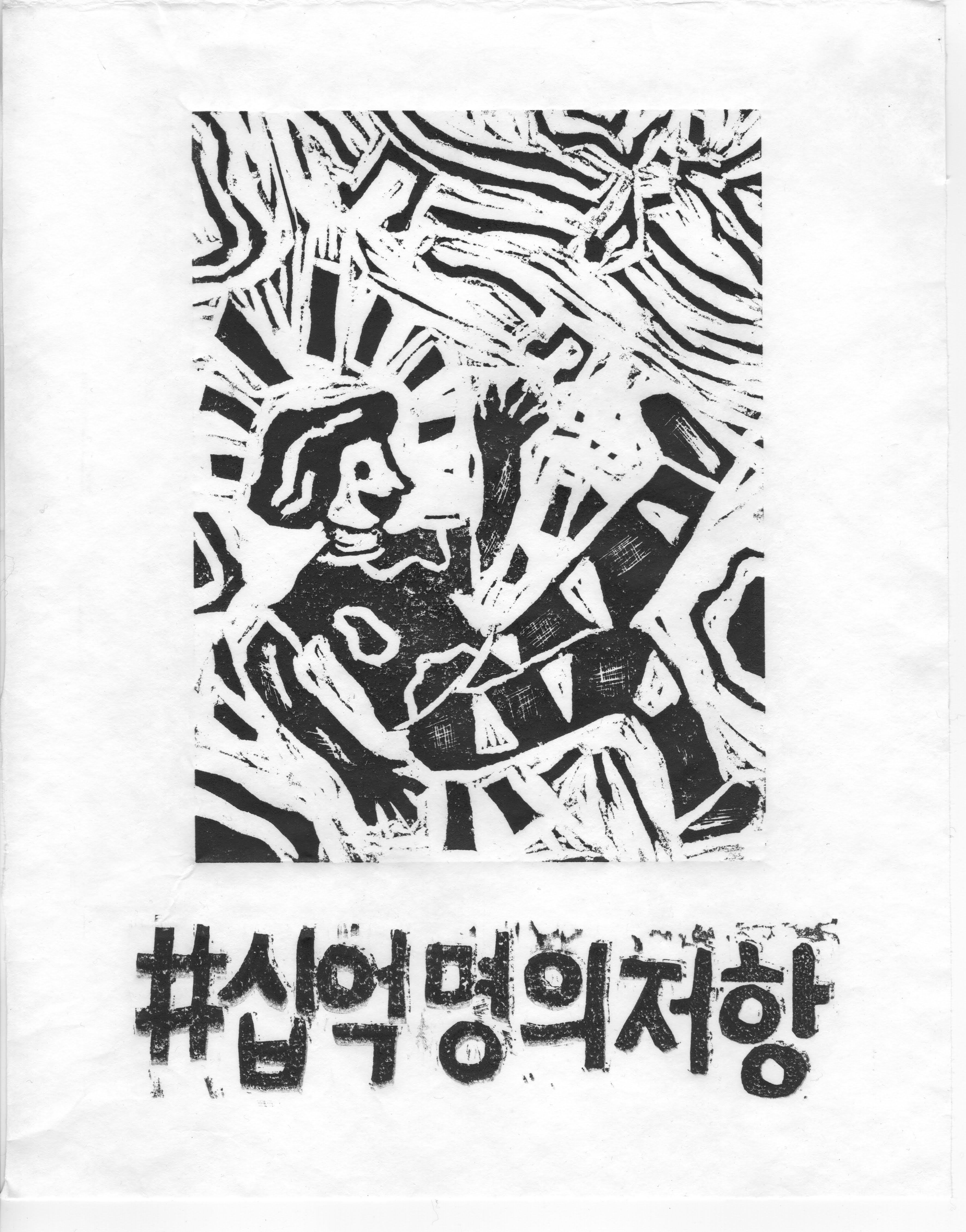 우리의 운동 방식이 제각각이고, 각자의 고통이 크게 느껴지다 보니 본의 아니게 손잡아줘야 할 사람들을 배척하는 일이 벌어집니다. 그래서 안타깝고 좌절하지만 여러 판화작품들이 한데 모인 것을 보며 서로의 상처가 깊지 않기를, 그렇더라도 서로가 나란히 서있게 되길 바라게 됩니다.