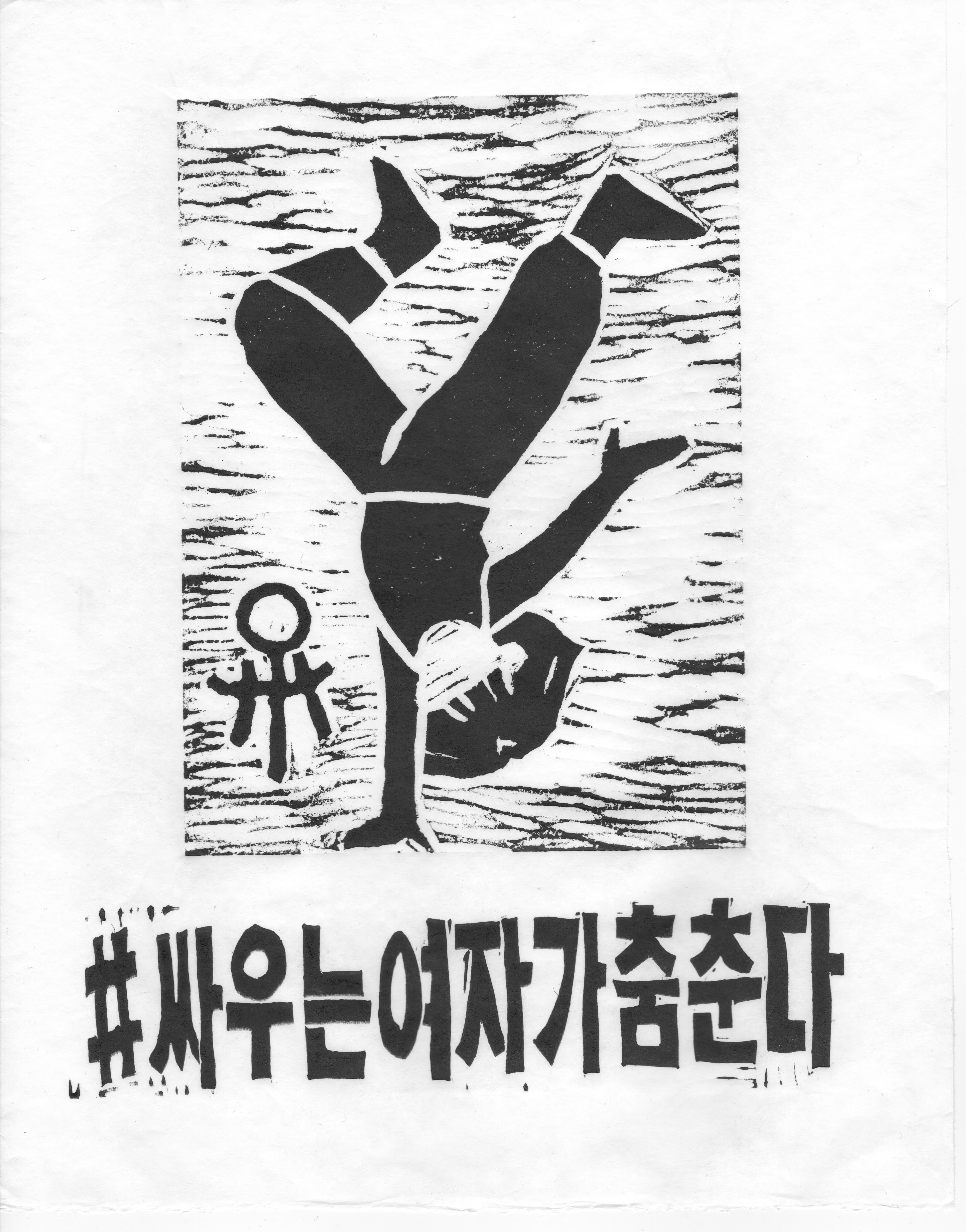 올해는 동아시아 에코토피아와 공동주최로 <싸우는 여자가 춤춘다, 공동 판화 프로젝트>를 진행했습니다. 춤을 추는 여성들을 판화로 표현하는 워크숍이었어요. 동아시아 에코토피아는 올해 전국각지에서 13번 워크숍을 진행했고, 한국성폭력상담소와 진행한 워크숍은 5번째 순서였습니다. 동아시아 에코토피아는 워크숍을 통해 모인 약 백여 명의 춤추는 여성 판화로 현수막을 제작하여 3.8 세계여성의날 맞이 여성대회에서 행진을 할 예정이라고 해요.