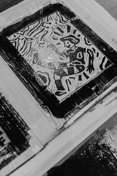 손이 빠르지 못한 탓에 진행 시간을 훌쩍 넘어서도 판화 작업 마무리를 못할까 걱정되어 미리 이미지를 구상해서 참가했습니다. 그럼에도 손재주 좋은 분들은 얼마나 감각적이고 아름다운 선들을 만들어 내는지 감탄하지 않을 수 없었습니다. 중학교 졸업한 이후로는 잡아 본 적 없는 조각칼 다루는 법, 종이에 미리 스케치한 이미지를 먹지를 이용해 목판에 전사하는 방법, 목판에 그려진 이미지와는 반대로 찍힌 이미지. 알았었는데도 새롭게 각성하는 것이, 꼭 페미니즘을 처음 만났을 때처럼 환호했지 뭡니까.