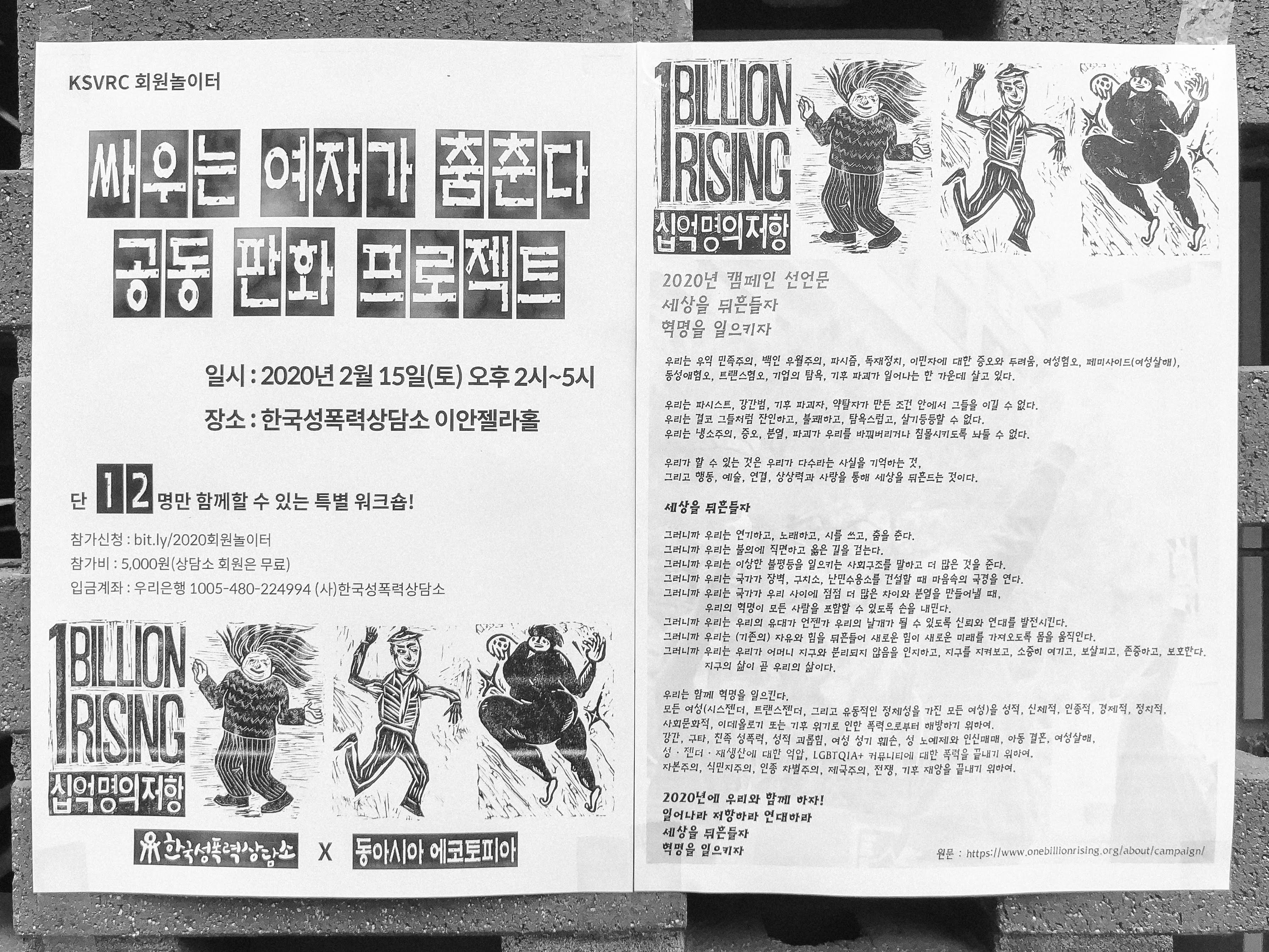 2020년 ONE BILLION RISING 캠페인 선언문 더보기