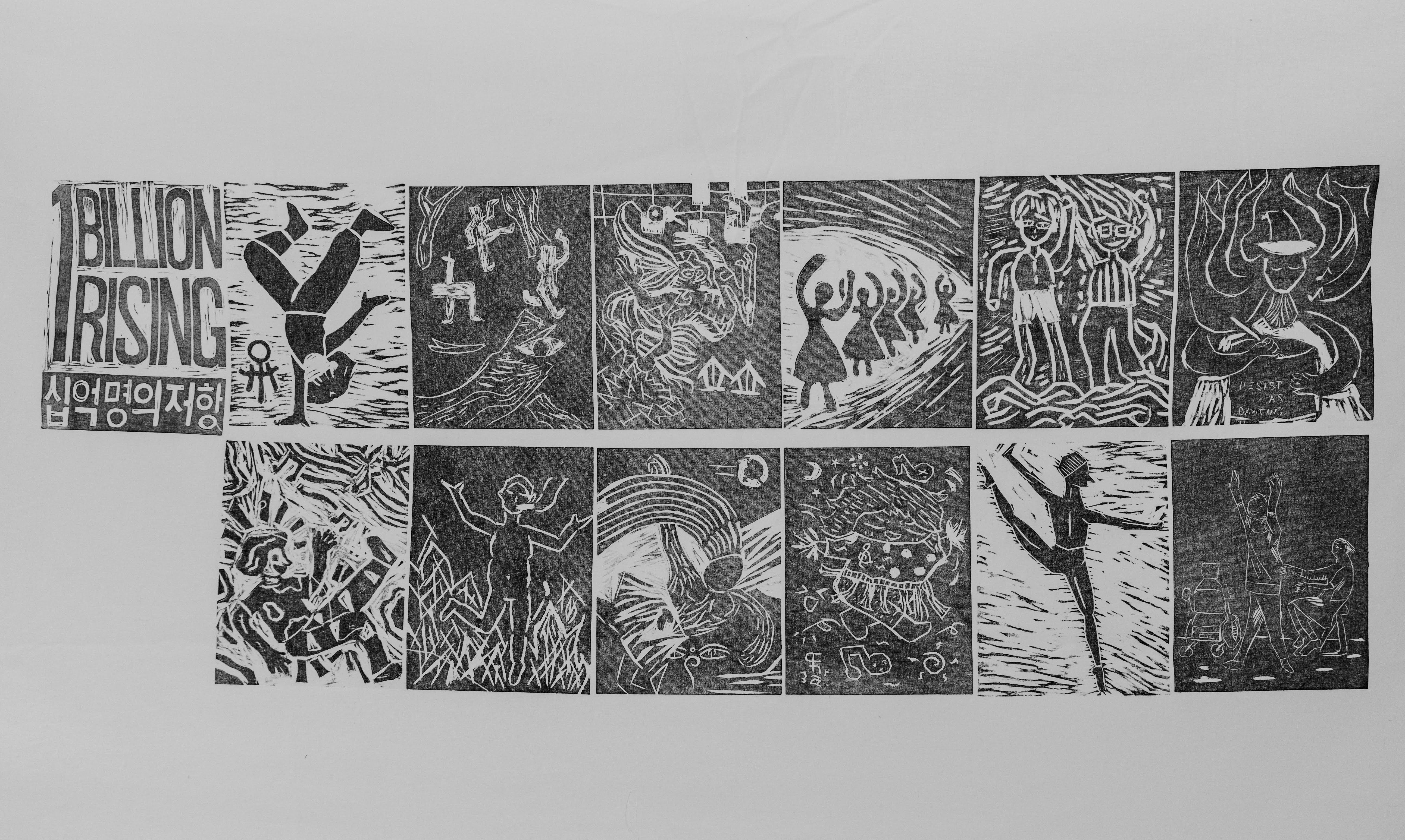 올해는 동아시아 에코토피아와 공동주최로 <싸우는 여자가 춤춘다, 공동 판화 프로젝트>를 진행했습니다. 춤을 추는 여성들을 판화로 표현하는 워크숍이었어요. 동아시아 에코토피아는 올해 전국각지에서 13번 워크숍을 진행했고, 한국성폭력상담소와 진행한 워크숍은 5번째 순서였습니다. 동아시아 에코토피아는 워크숍을 통해 모인 약 백여 명의 춤추는 여성 판화로 현수막을 제작하여 3.8 세계여성의날 맞이 여성대회에서 행진을 할 예정이라고 해요.