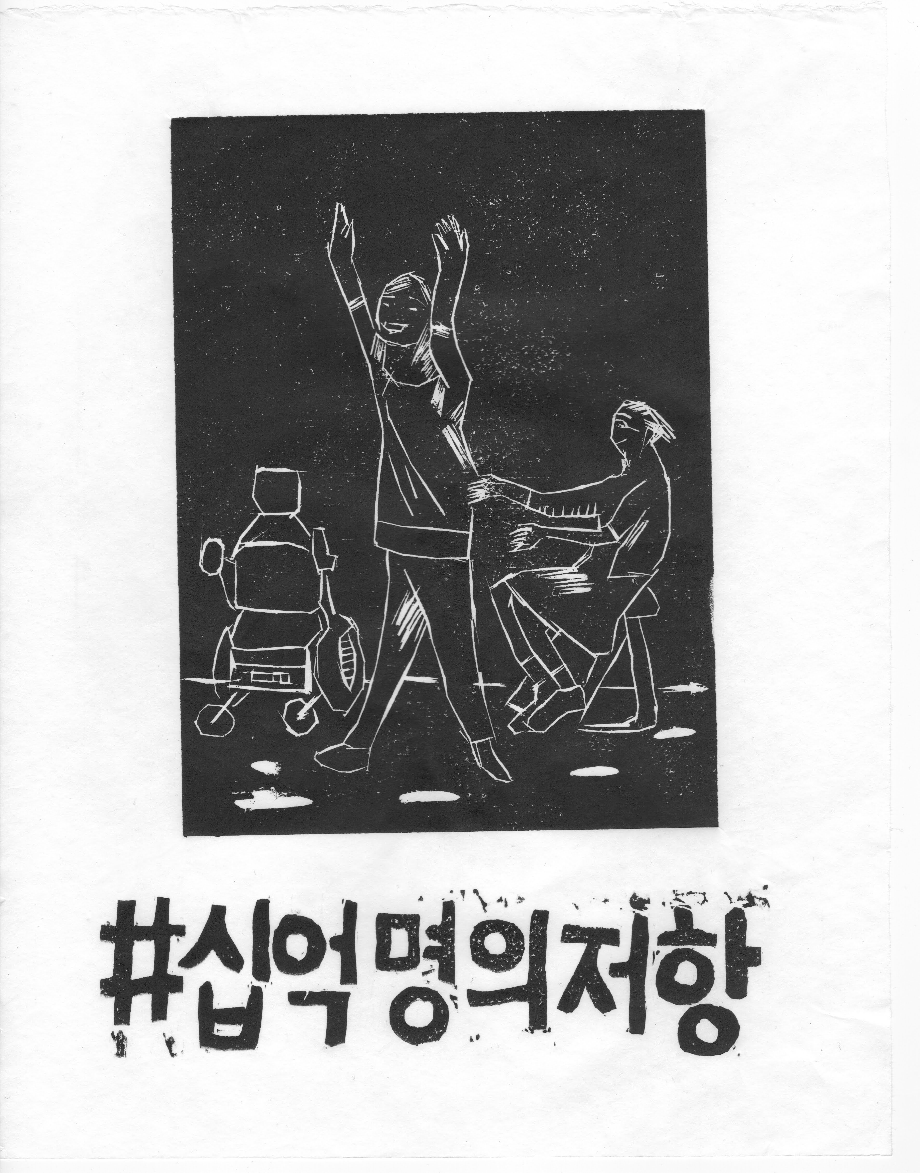 우리의 운동 방식이 제각각이고, 각자의 고통이 크게 느껴지다 보니 본의 아니게 손잡아줘야 할 사람들을 배척하는 일이 벌어집니다. 그래서 안타깝고 좌절하지만 여러 판화작품들이 한데 모인 것을 보며 서로의 상처가 깊지 않기를, 그렇더라도 서로가 나란히 서있게 되길 바라게 됩니다.
