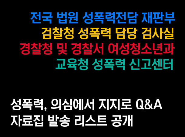 이 글을 읽고 계신 여러분 중에서도 이 자료집에 관심가져 주시고 널리 홍보해주신 분들이 꽤 계실 것 같습니다. 이 자리를 빌려 감사의 인사를 드리고 싶습니다. 여러분이 아니었다면 자료집 배포 대작전도 실패로 돌아갔을지도 모릅니다. 여러분이 밀어주신 소중한 후원금으로, 이 자료집을 꼭 읽어야 하는 대상인 검찰/경찰/법원/교육청의 성폭력 관련 부처에 자료집을 전달할 수 있었습니다.