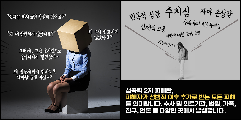 예전에 비해 성폭력 피해자들에 대한 인식이 조금은 좋아진 것 같지만, 아직까지도 가해자가 아닌 피해자를 탓하는 사람들이 있어요. 다행히 제 주변에는 그런 인식을 가진 사람은 없지만 기사나 댓글을 보면……왜 가해자를 탓하지 않고 피해자를 탓하는지 잘 모르겠어요. 저는 물어보고 싶어요. 피해자한테 왜 2차 가해를 하는지? 만약에 자기 가족이 당한다면 그 소리를 할 수 있는지?