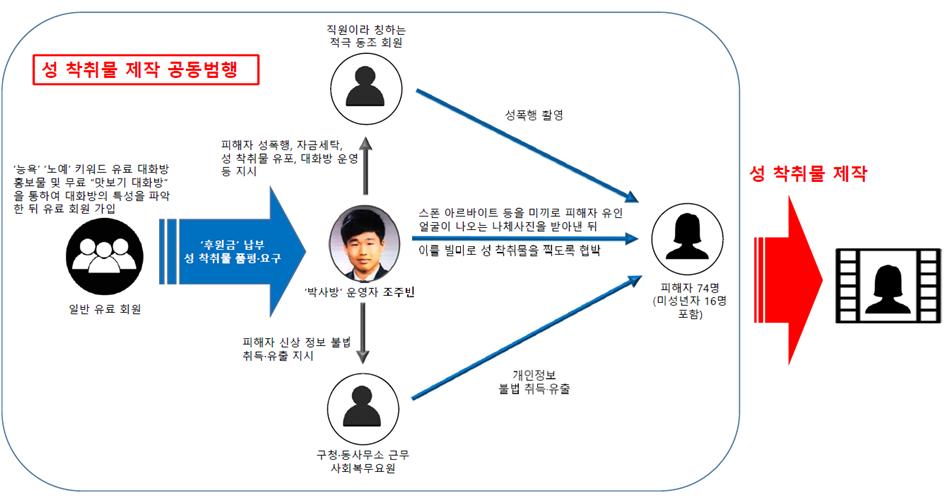 해당 사안은 불법동영상을 제작한 자가 온라인 메신저로 이를 단순 유통 시키거나 온라인 메신저로 소통하는 일반인들 사이에서 우연히 불법 동영상이 유통된 것과는 본질적으로 다릅니다. 조주빈은 성착취 영상물을 제작하면서 텔레그램이 신속한 쌍방향 소통이 가능한 매체라는 점을 적극적으로 이용하였습니다. 유료회원인 소위 ‘후원자’들은 대화방을 가입하면서 상당한 자금을 제공하고, 성착취 영상물 시청을 통해 조주빈의 제작 행위를 지지하고, 품평과 적극적 의견 표출을 통해 성착취 영상물 제작을 의뢰한 자금제공자, 주문자·소비자들임. 이들 중 가장 소극적으로 행동한 자들도 단순 소지로 볼 수 없습니다.
