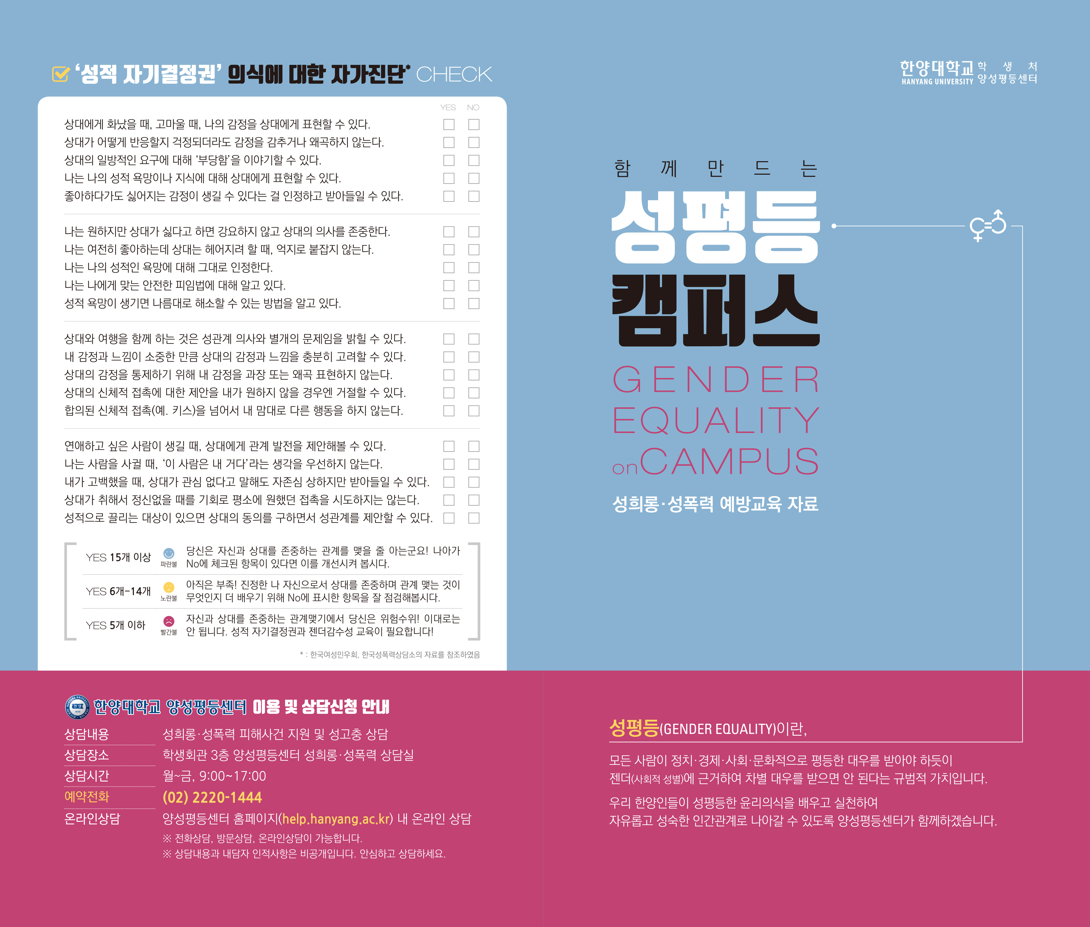 '성적 자기결정권' 의식에 대한 자가진단 CHEKE. 사진 출처 : 한양대 "함께 만드는 성평등 캠퍼스" 리플렛 중