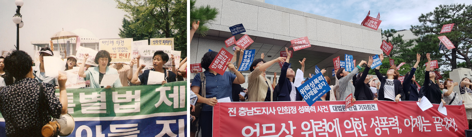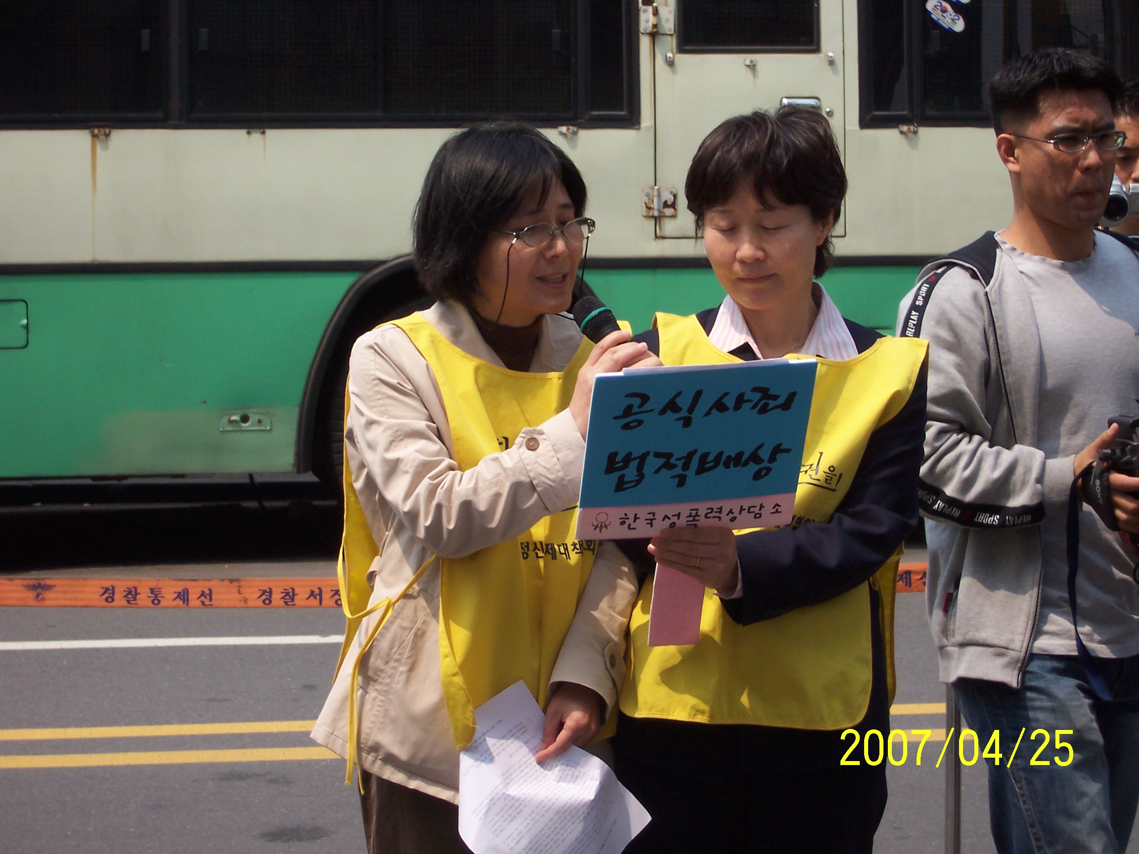 지 저는 여성학을 공부하고 여성학을 가르치고 있었는데, 여성학이 실천 학문이거든요. (*'이론과 실천이 함께 해야 한다'는 여성학의 중요한 지점이다.) 그런데 우리 한국 사회에 성폭력 상담소가 한 군데도 없고. 성폭력상담소의 역할이 너무 필요한데. 서구에서는 이십 년 전부터 이런 상담소들이 활동을 하고 있었어요.