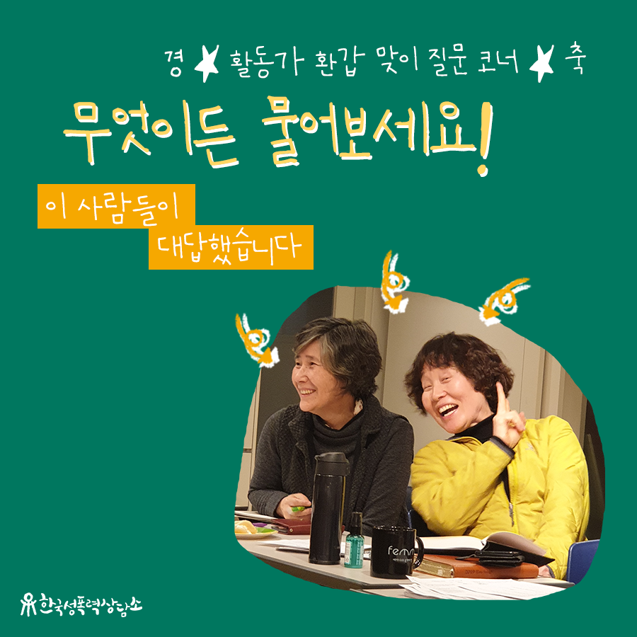 한국성폭력상담소와 함께 환갑을 맞은 두 활동가에게 무엇이든지 물어보는 코너였습니다.