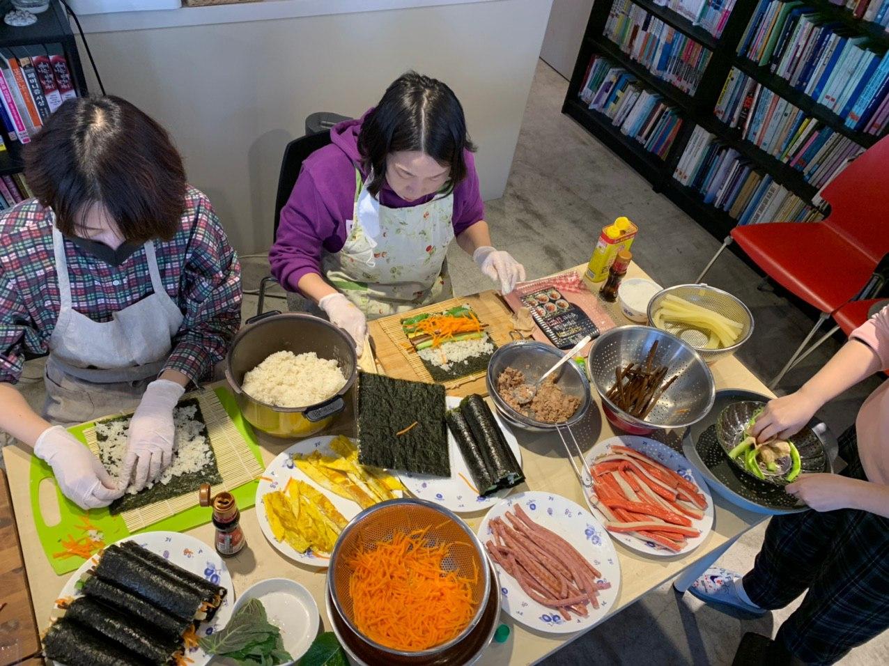 김밥은 백목련, 파이, 주리 활동가가 직접 만들었어요. 일반김밥과 참치김밥뿐 아니라 비건용 두부김밥과 오이김밥을 준비해주셨습니다. 각자 개인컵에 담아갈 수 있게 미소장국도 끓여주셨어요! 참치김밥에는 취향에 따라 비건 마요네즈를 듬뿍 뿌려먹을 수 있었고, 오이김밥은 쌈장과 곁들여 먹을 수 있었어요.