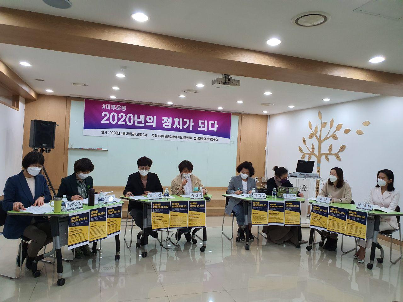 2018년 1월, 검찰 내 성폭력을 세상에 알린 검사의 말하기로 시작된 미투운동은 한국 사회를 변화시키는 거대한 물결이 되었습니다. 2년이 지난 지금, 미투운동은 우리 사회에 어떤 변화를 만들어 내었을까요? 미투운동이 이루어낸 성과와 앞으로의 과제를 어떻게 진단할 수 있을까요? 이에 답하고 이야기하고자 4월 3일, <#미투운동 2020년의 정치가 되다> 토론회가 마련되었습니다. 이번 토론회는 코로나19로 인해 온라인 생중계로 진행되었습니다.