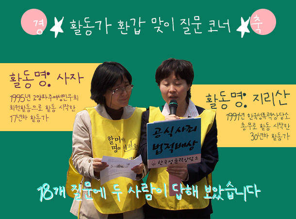다음으로는 '한국성폭력상담소의 활동가로 산다는 것'을 주제로 6개의 질답이 업로드됩니다.