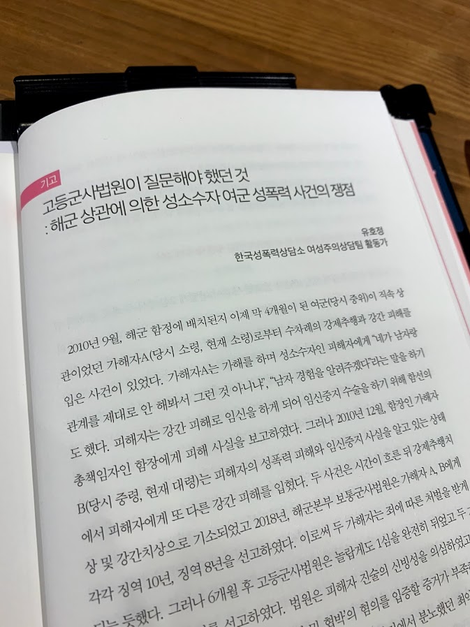 지난 2월 모임에서는 해군 상사에 의한 성소수자 여군 성폭력 사건을 다룬 글 “고등군사법원이 질문해야했던 것: 해군상관에 의한 성소수자 여군 성폭력 사건의 쟁점(여성주의상담팀 유랑 활동가)”<반성폭력이슈리포트 13호>을 같이 읽고 토론을 진행했습니다.