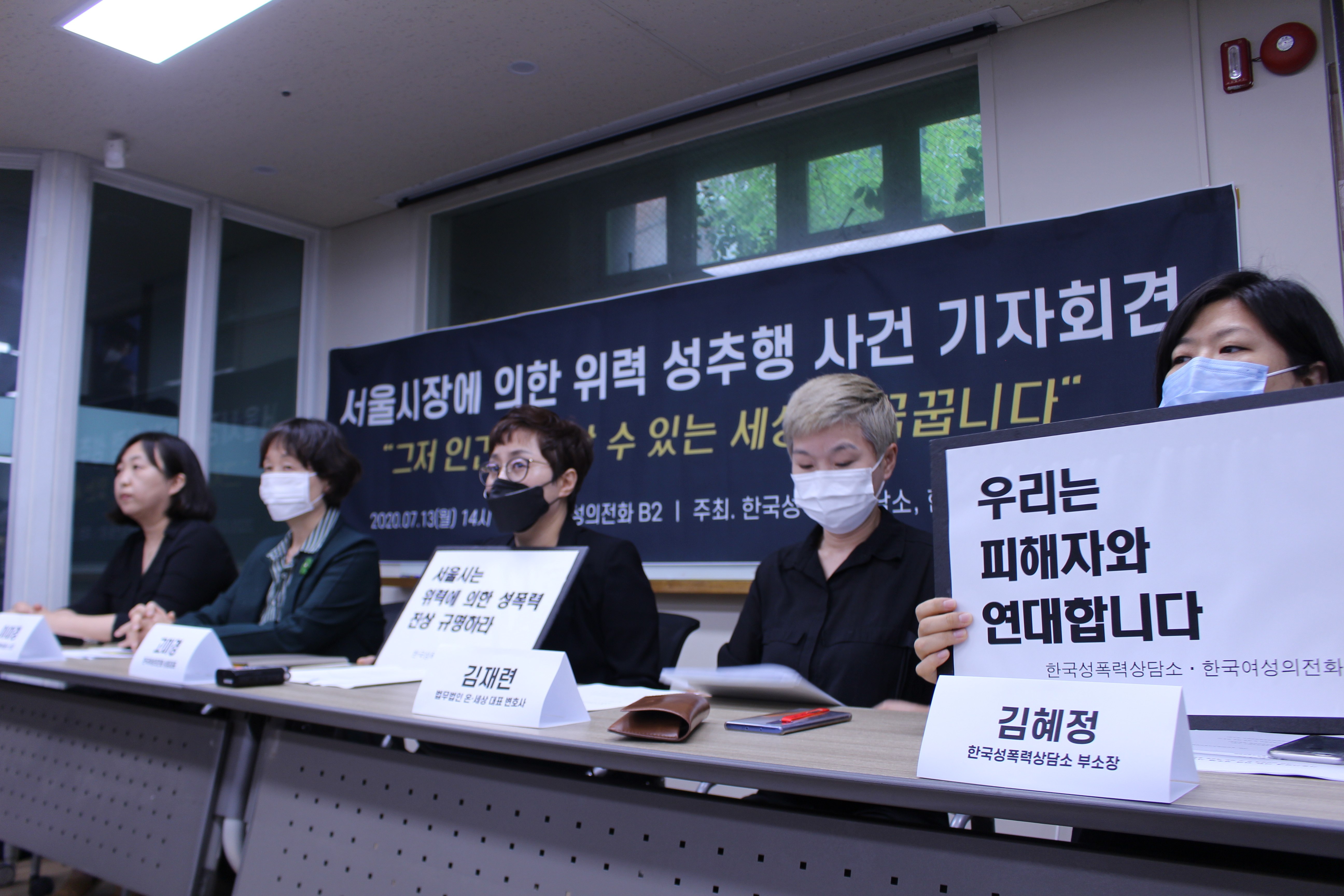 2020년 7월 8일 박원순 전 서울시장의 위력에 의한 비서 성추행 사건이 경찰에 신고되었습니다. 4년동안의 직장 내 성폭력 사건을 적법한 절차를 통해 해결하고, 사과를 받기 위한 피해자의 선택이었습니다. 이에 어렵게 용기를 낸 피해자의 목소리가 헛되이 되지 않도록 하기 위해서, 피해자를 지원하는 한국성폭력상담소와 한국여성의전화가 기자회견을 마련하였습니다.