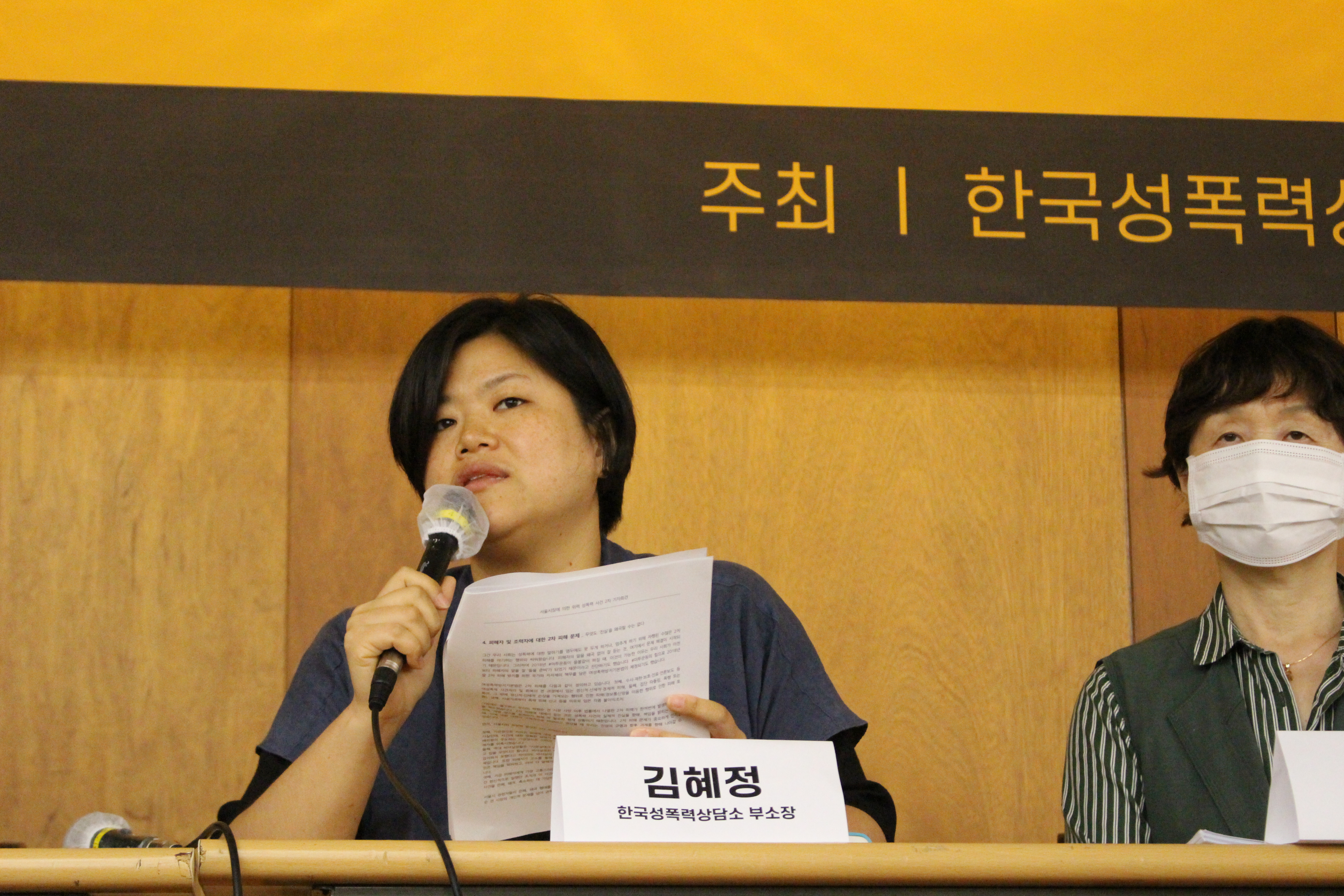 다음으로는 한국성폭력상담소 이미경 소장의 진상규명의 방향과 책임에 대한 발언이 이어졌습니다.