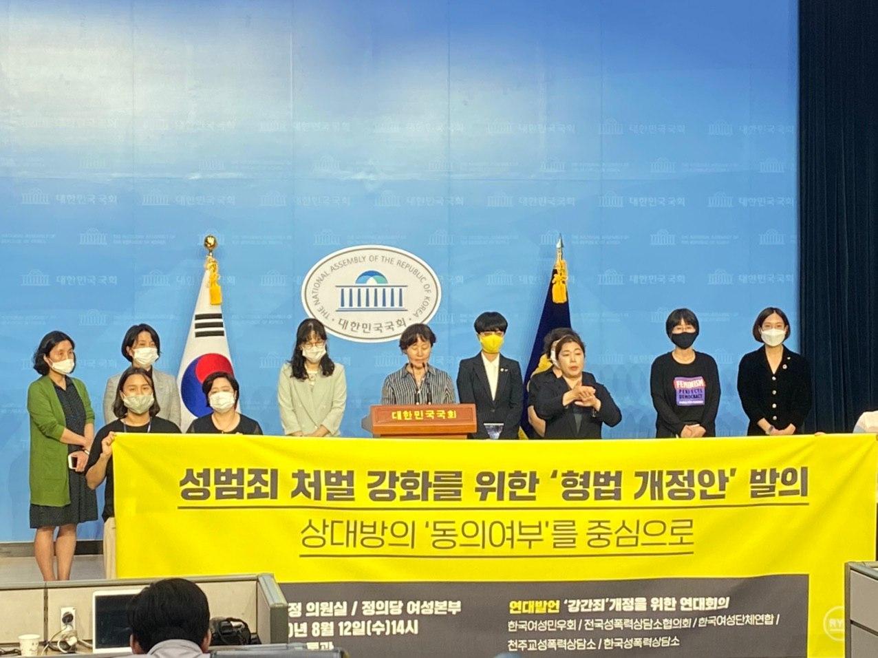 2020년 8월 12일, 정의당 류호정 의원의 대표 발의로 강간죄 판단기준을 ‘동의’ 여부로 바꾸는 형법 개정안이 발의됐다. 이른바 ‘비동의강간죄’ 개정안이다.