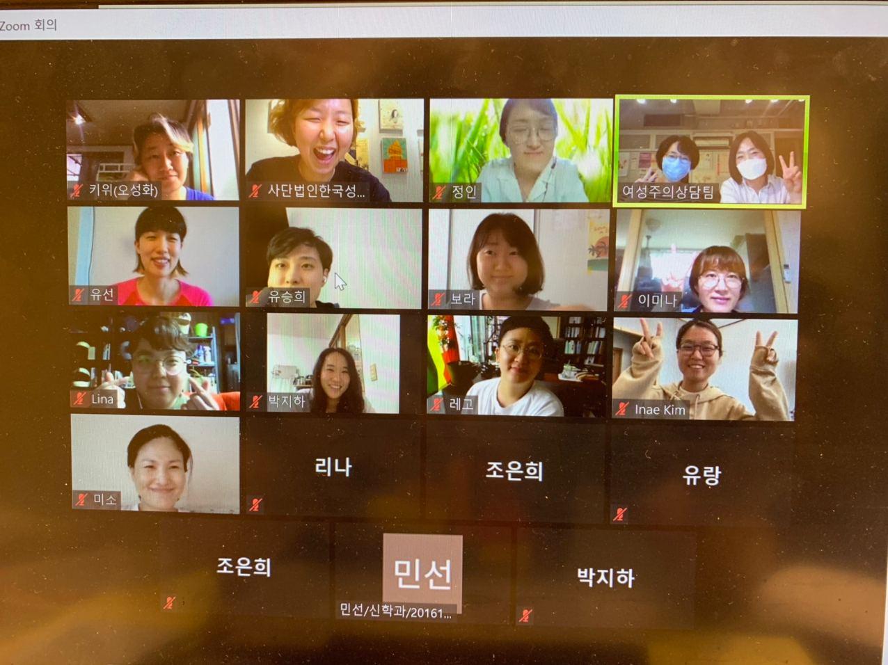 수도권에 코로나19 확진세가 심상치 않았던 지난 8월 16일(일) 오후, 이번 교육을 기획하고 준비한 여성주의상담팀은 사무국과 함께 긴급 화상회의를 진행했습니다. 코로나 시국이라 애초부터 수강인원을 최소한의 인원인 15명으로 한정했었지만, 하루종일 창문이 없는 지하 교육장에 강사와 진행팀을 포함한 스무 명 남짓한 사람들이 5일간이나 같이 있는 것은 여러모로 위험부담이 컸습니다. 그래서 결국 전체교육 5일 중 첫날을 제외한 4일을 온라인 강의로 전환하기로 결정하고, 모든 교육참가자와 강사들에게 전화를 돌려 이 소식을 전했습니다.