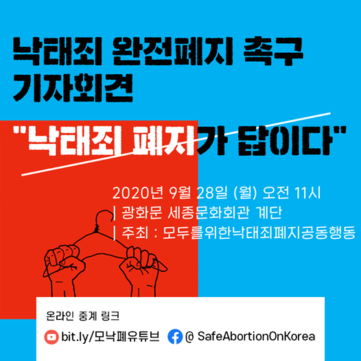수많은 여성들의 용기 있는 행동은 2019년 4월 11일, 형법 '낙태죄' 헌법불합치 결정을 이끌어냈습니다. 안전하고 합법적인 임신중지를 위한 국제행동의 날인 오늘, 우리 역시 함께 낙태죄 전면 폐지를 촉구합니다.