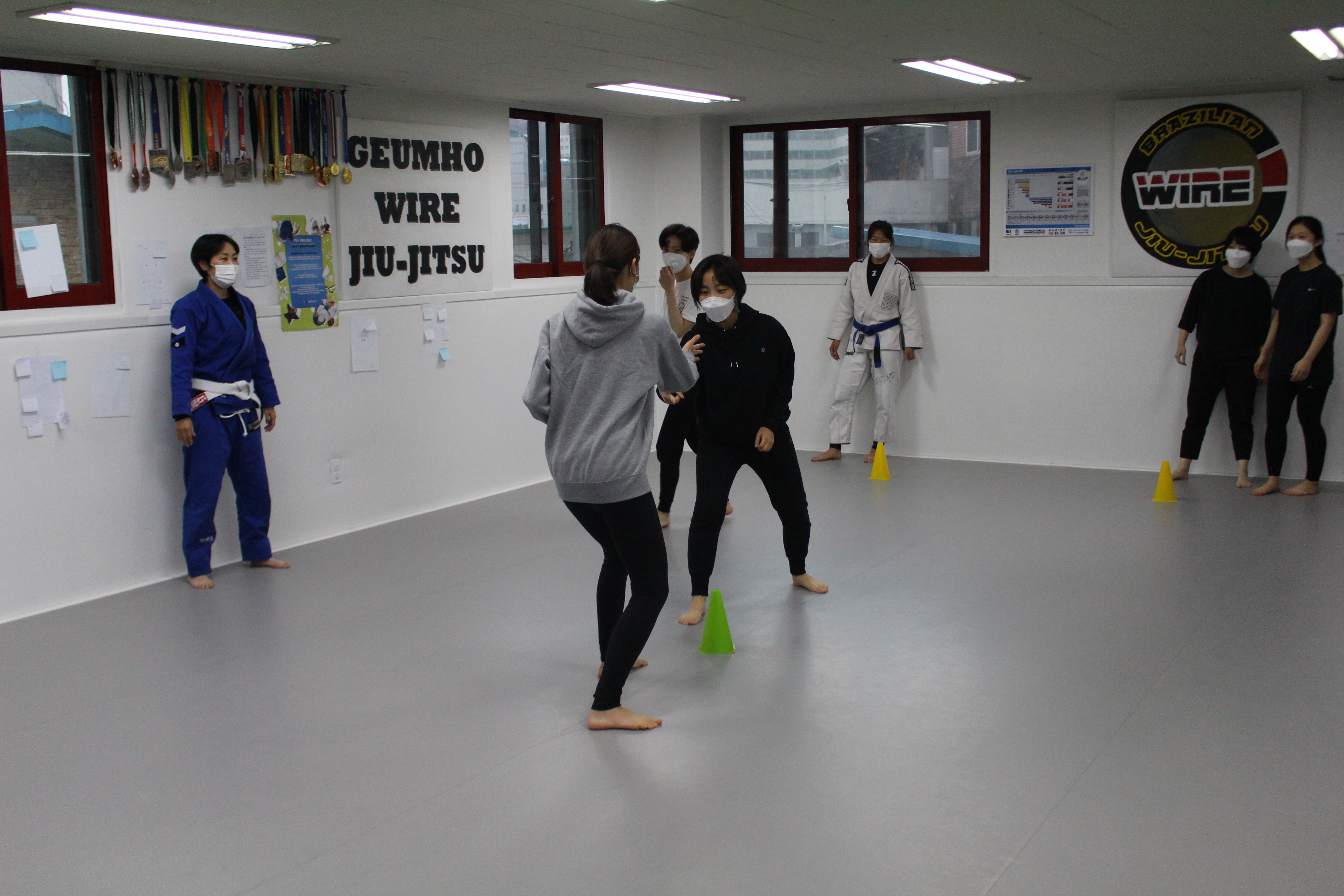 지난 11월 21일(토), 22일(일) 오후 4시부터 6시, 주짓수 투데이 클래스가 진행되었습니다. 이번 클래스는 지난 자기방어훈련 <일상 대응 연습>의 후속 프로그램으로 기획되었는데요, 물리력에 대응하는 몸의 기술을 조금 더 익히고 싶은 마음이 참가자도 기획자도 들었기 때문이었습니다. 본격적으로 여성주의 자기방어훈련 수업을 진행한 것은 아니지만 위밋업스포츠의 여러 강사선생님들께서 자기방어의 관점을 수업 곳곳에 녹여서 진행해주셨습니다. 코로나19 상황으로 인해 아쉽지만 참여자 수를 12명으로 제한하여 신청 받고, 휴식하는 기간 없이 연달아 수업을 진행하게 되었습니다.