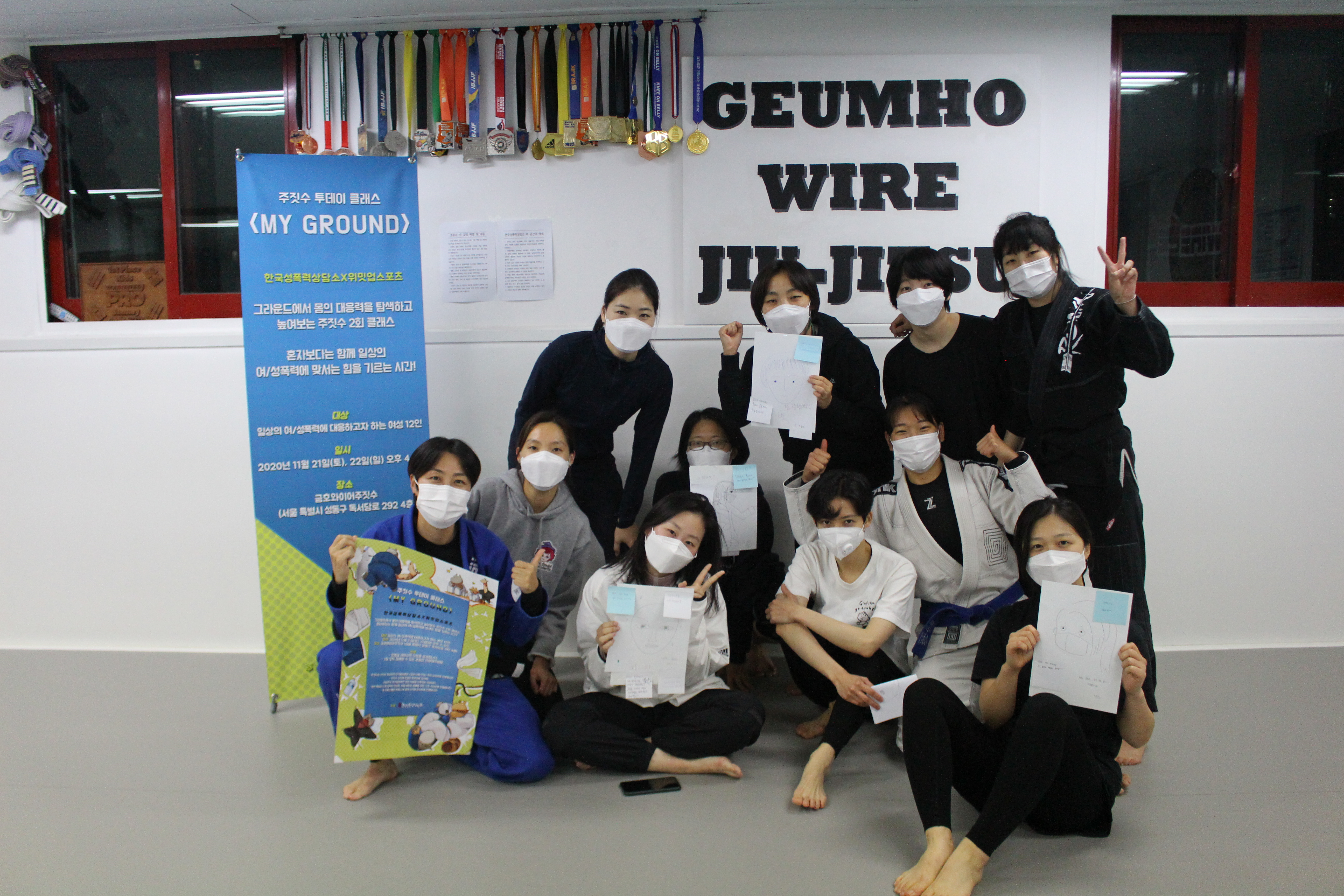 “그라운드에서 몸의 대응력을 탐색하고 높여보는 주짓수 2회 클래스. 혼자보다는 함께 일상의 여/성폭력에 맞서는 힘을 기르는 시간!”