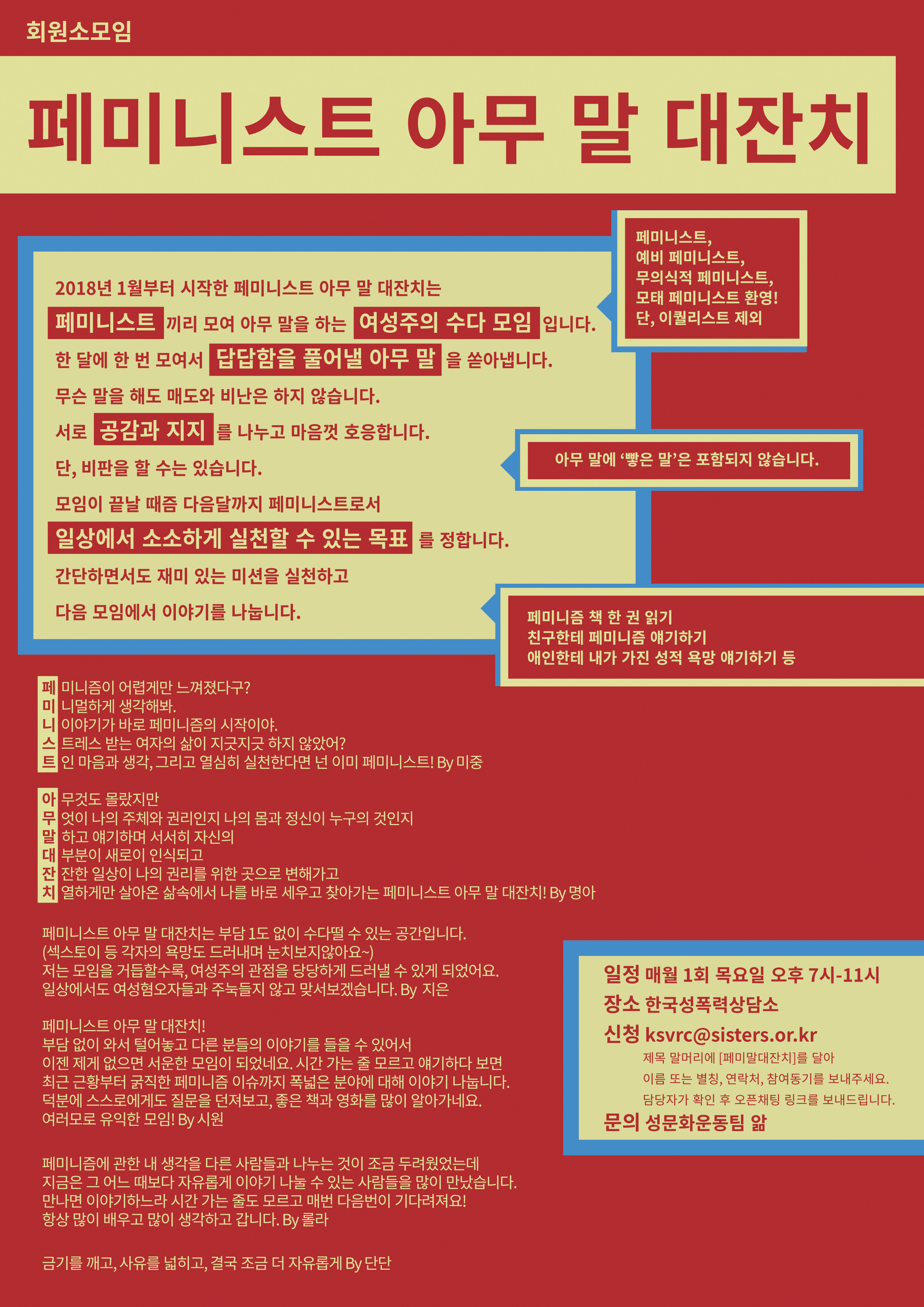 제목 : [페미말대잔치] 회원소모임 참여 신청 내용 : 이름/별칭, 연락처, 참여 동기
