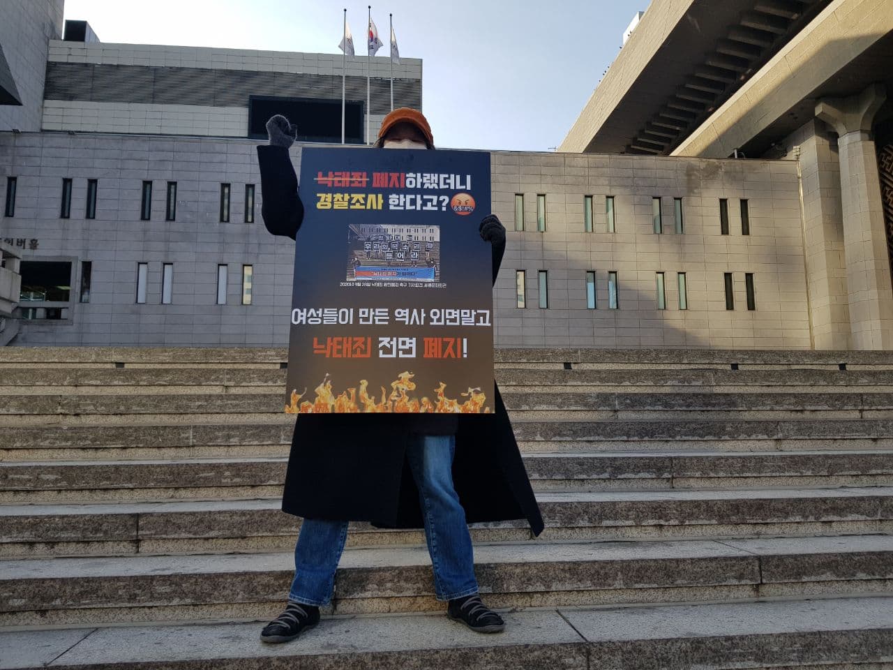 이에 한국성폭력상담소 활동가들은 부당한 경찰조사에 항의하고, 낙태죄 전면폐지라는 여성들의 역사를 이어나기기 위해 낙태죄 투쟁이 있었던 상징적인 장소 4곳에서 경찰조사가 마칠 시간까지 흩어져 1인 시위를 진행했습니다.