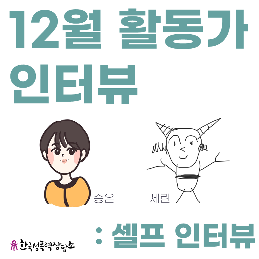 승: 지난번에 활동가 인터뷰(* 10월 활동가 인터뷰) 했을 때 백목련이 “사람들이 후원하는 걸 마치 동정하듯이, ‘너 좋은 일하고 힘든 일 하니까 도와줄게’ 이렇게 생각한다, 근데 자기가 사람들한테 후원하라고 얘기하는 건 어떤 식으로든 사회를 변화시키는 것에 동참하자는 의미이다.” 라고 말을 했잖아요. 그게 너무 기억에 남는 거예요. 제가 후원이라는 걸 가벼운 의미로 생각했던 것도 있고, 사회를 바꾸려고 노력하는 사람들은 느슨하든 가깝든 연결되어있다는 생각이 들었어요. 활동이 끝날 때가 되니 시민단체가 되게 가깝게 여겨져요. 물론 상담소에 있는 활동가들의 개별적인 목소리나 얼굴을 알기 때문에 더 그렇기도 하겠지만, 기사나 SNS를 통해서 활동하는 모습을 보고 후원을 할 때 이들과 함께하고 있다는 느낌을 많이 받을 것 같아요.