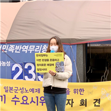 제1478차 수요시위 기자회견 포스터에 들어갈 문구는 ‘우리가 들었다. 우리가 답한다’입니다. 우리는 30년 전 그 목소리를 들었고 이제는 우리가 답할 차례라는 의미를 담고 있습니다. 그리고 이에 맞춰 피켓 제작까지 이루어졌습니다. 그리고 수요시위 기자회견 당일 현장에서 저는 성명서 낭독을 맡았습니다. 원래도 사람들 앞에서 말하는 것을 어려워하는 터라 이날 역시 정말 많이 떨었습니다. 어떤 목소리를 어떤 힘을 가지고 읽어야 할지부터 시작해서 버벅대면 어쩌나 싶은 잔걱정들이 떠올랐습니다. 그래서 차라리 아무것도 안 보이면 좋겠다는 생각에 안경도 벗어 던졌습니다. 그런데 막상 제 차례가 되고 사람들 앞에 서자 떨림보다는 분노의 감정이 너무 커져서 그 감정을 표현하기 바빴던 것 같습니다. 옆에서는 또 다른 애국 시위를 하는 사람들이 가득했고 그곳에서 말하고자 하는 것이 제가 생각하는 것과는 반대되기에 개인적으로 화가 났습니다. 그리고 말을 하다 보니 피해자들의 30년간의 외침과 한일 양국에 대한 분노들이 떠오르면서 또 화가 났습니다. 그래서 성명서를 읽는 시간 동안은 그곳의 사람들이 저에게 집중하는 시간이니만큼 마음을 다해 정말 진심으로 읽었습니다. 마친 후 주변 친구들과 정의기억연대 활동가님의 격려와 칭찬에 감사드렸습니다. 사실 어쩌면 안경의 힘일지도 모르겠습니다. 이날 수요시위를 마치고 가장 먼저 든 생각은, ‘후련하다 ’입니다. 그동안 양국 특히 일본에 가졌던 그 무수한 감정들을 이렇게나마 표현하고 외치고 나니 조금은 후련한 마음이 들었습니다. 물론 아직 피해자분들의 외침에 대한 사과는 제대로 이뤄지지 않았기에 갈 길은 멀었습니다. 이번 기회를 통해 저는 그 외침을 외면하지 않고 함께 외치는 사람이 되리라 다짐했습니다.