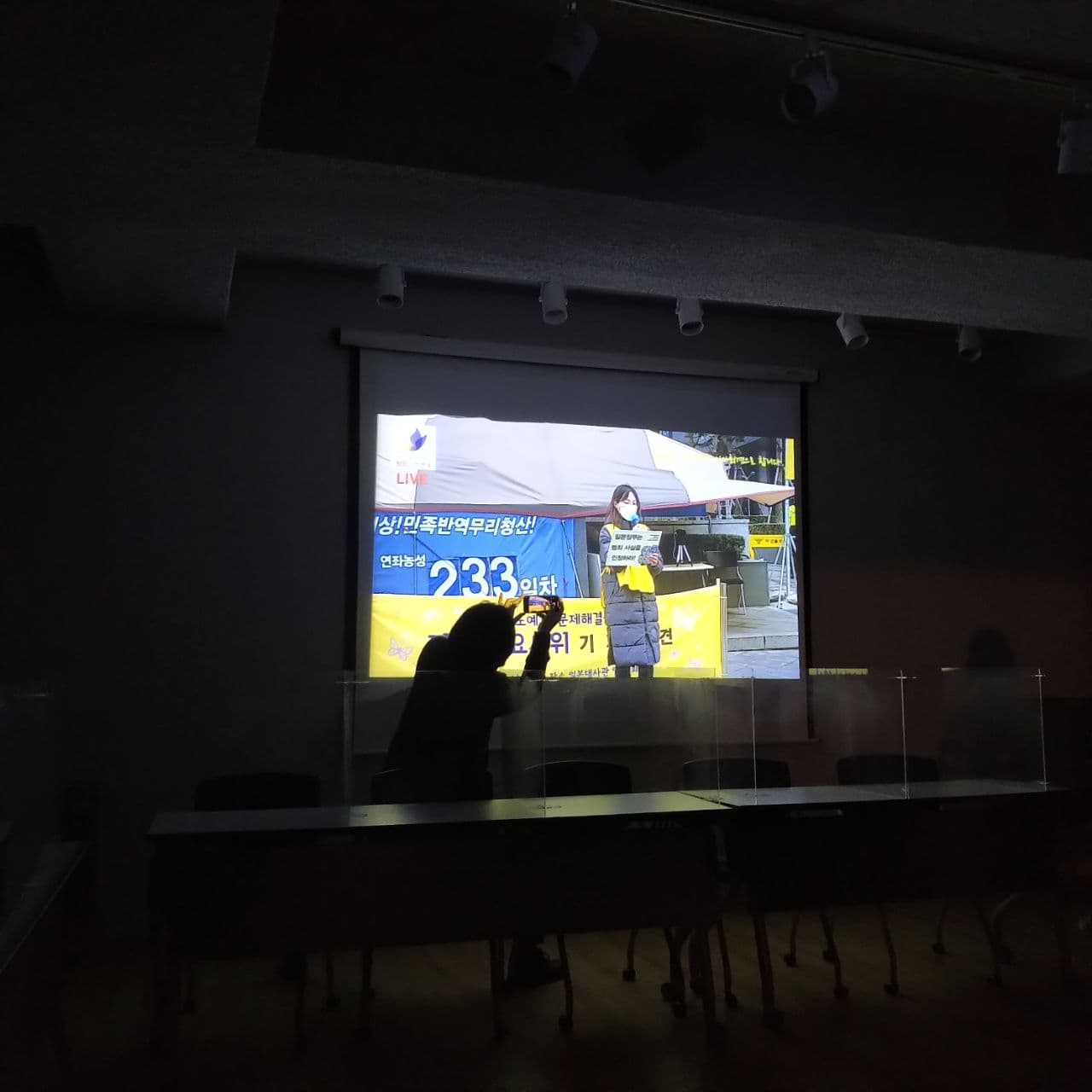 수요시위는 매주 수요일 일본대사관 앞 평화로에서 진행됩니다. 이번 1478차 수요시위 기자회견은 코로나로 인해 현장참여가 불가능했고, 주관 단체였던 한국성폭력상담소 역시 기획팀 3명만 현장출석이 가능했습니다. 구호, 율동, 현수막 퍼포먼스 등 예년에는 이루어졌던 행사 프로그램도 빠지게 되었습니다. 다행히 기획팀은 기존부터 3명이었기 때문에 별다른 인원조정 없이 그대로 진행되었습니다. 수요시위는 기자회견 형식으로 유튜브 스트리밍을 통해 송출되었고, 참여는 유튜브 채팅으로 이루어졌습니다.