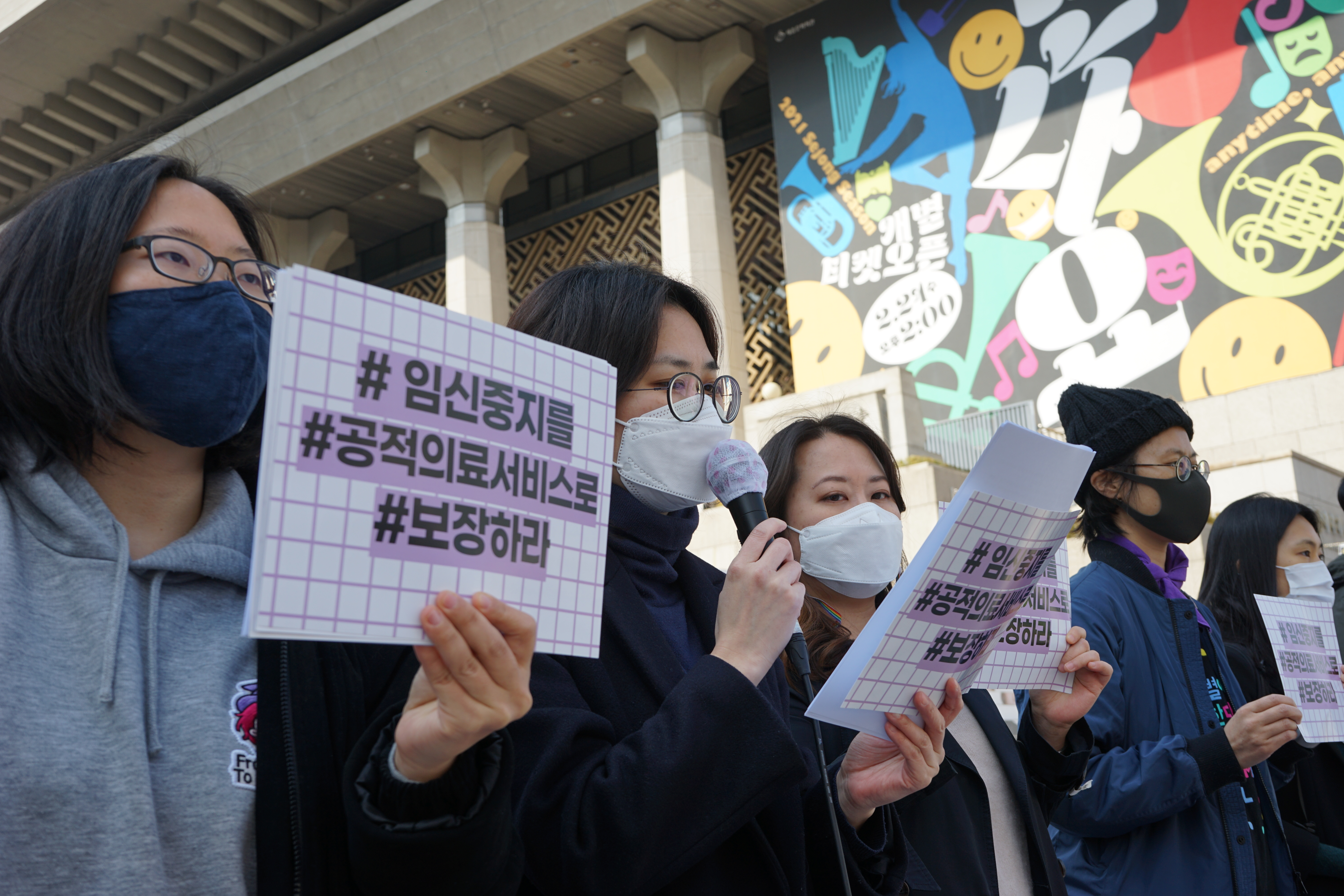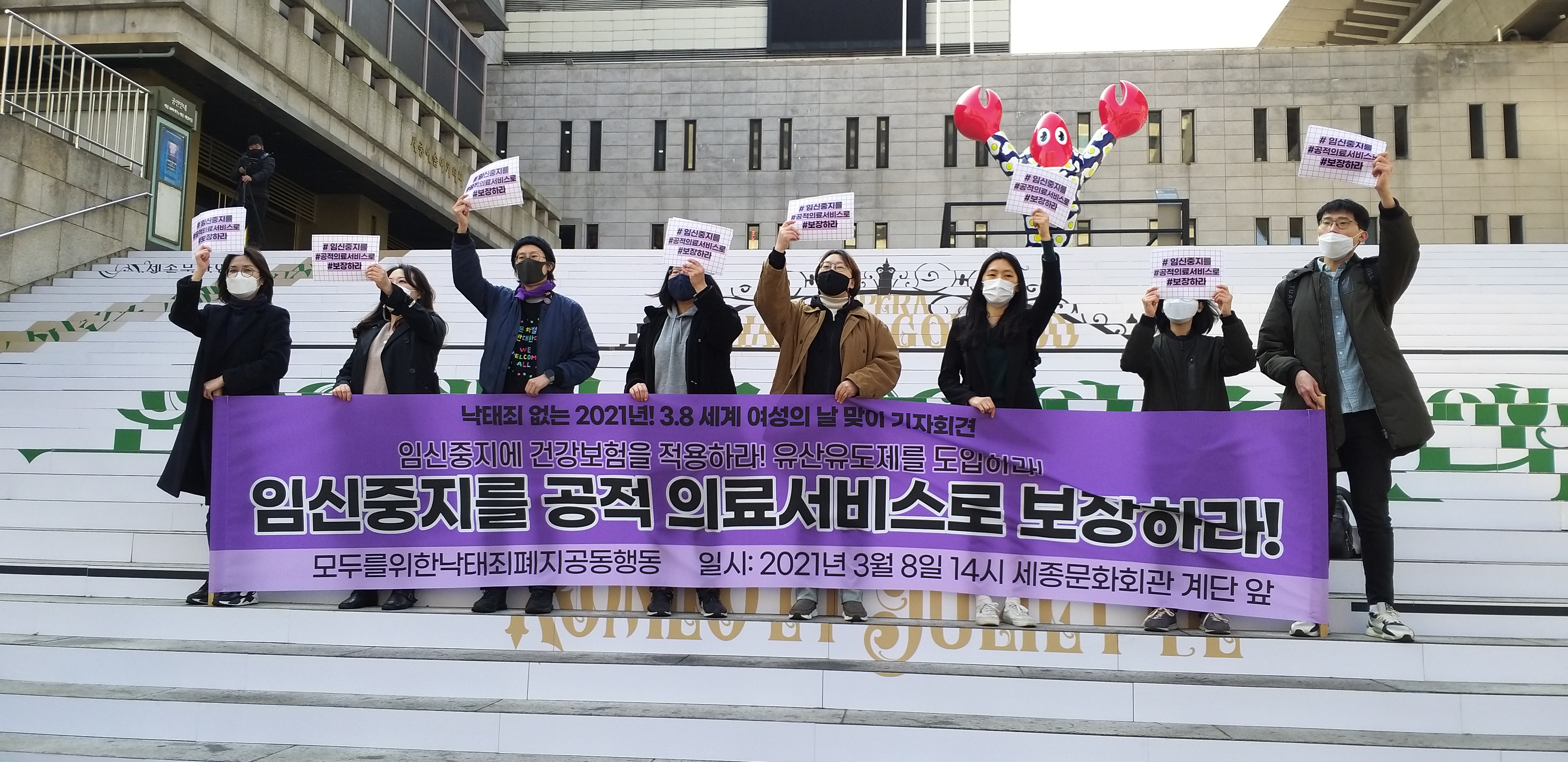 지난 2021년 3월 8일 오후 2시, 광화문 세종문화회관 계단에서 모두를위한낙태죄폐지공동행동(이하 '모낙폐')이 주최하는 3.8 세계여성의날 맞이 기자회견 "임신중지를 공적 의료서비스로 보장하라"가 진행되었습니다.