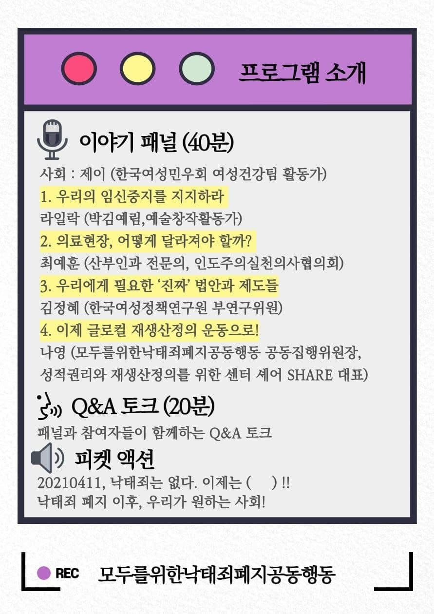 이번 토크쇼는 임신중지 비범죄화를 주장해온 기존 운동에서 여성의 성·재생산권 등 권리 보장을 위해 현실을 확인하고 관련 법·제도 등 마련을 위한 방향성을 제시하는 귀한 시간이었다.