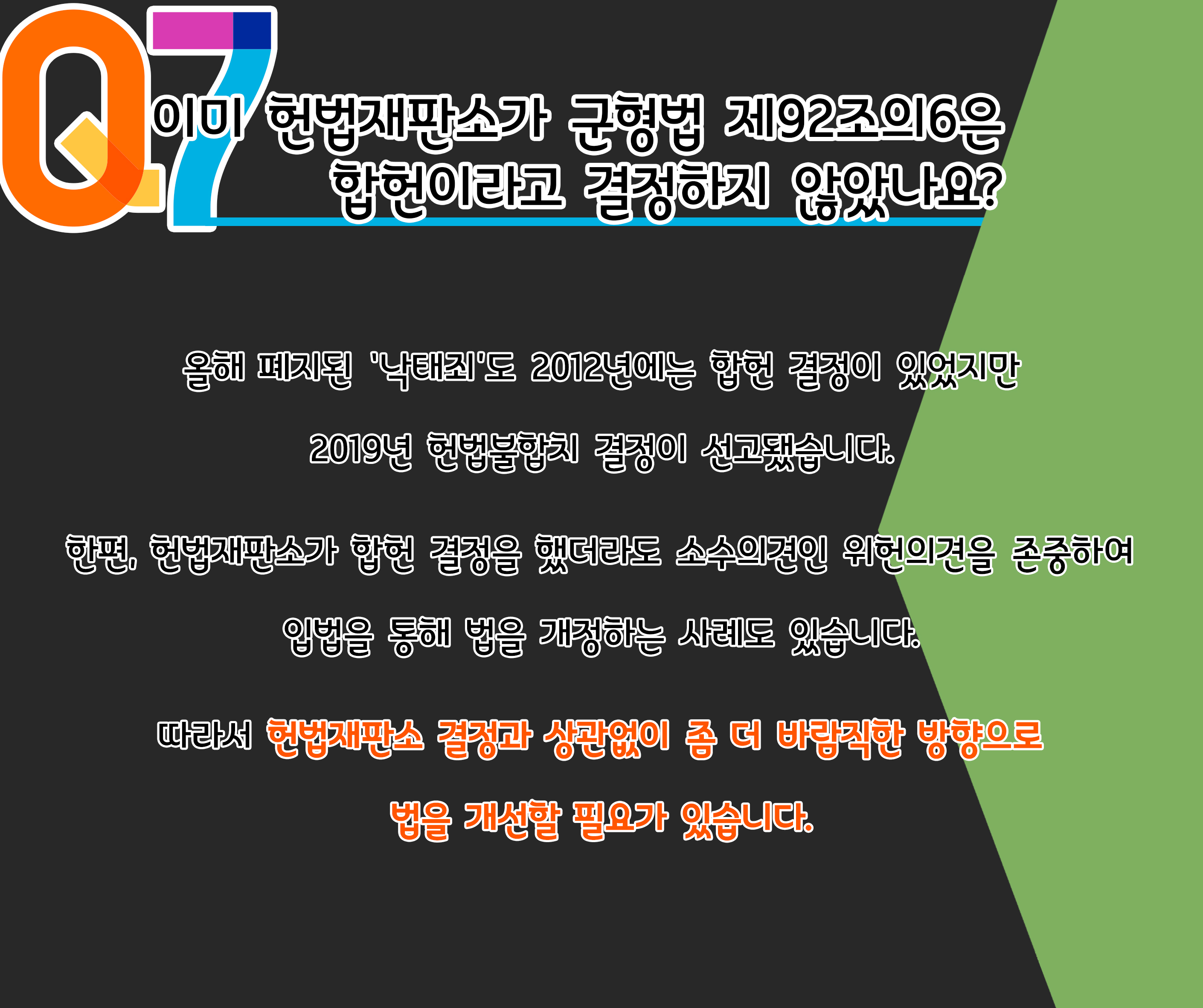 Q7. 이미 헌법재판소가 군형법 제92조의6은 합헌이라고 결정하지 않았나요?