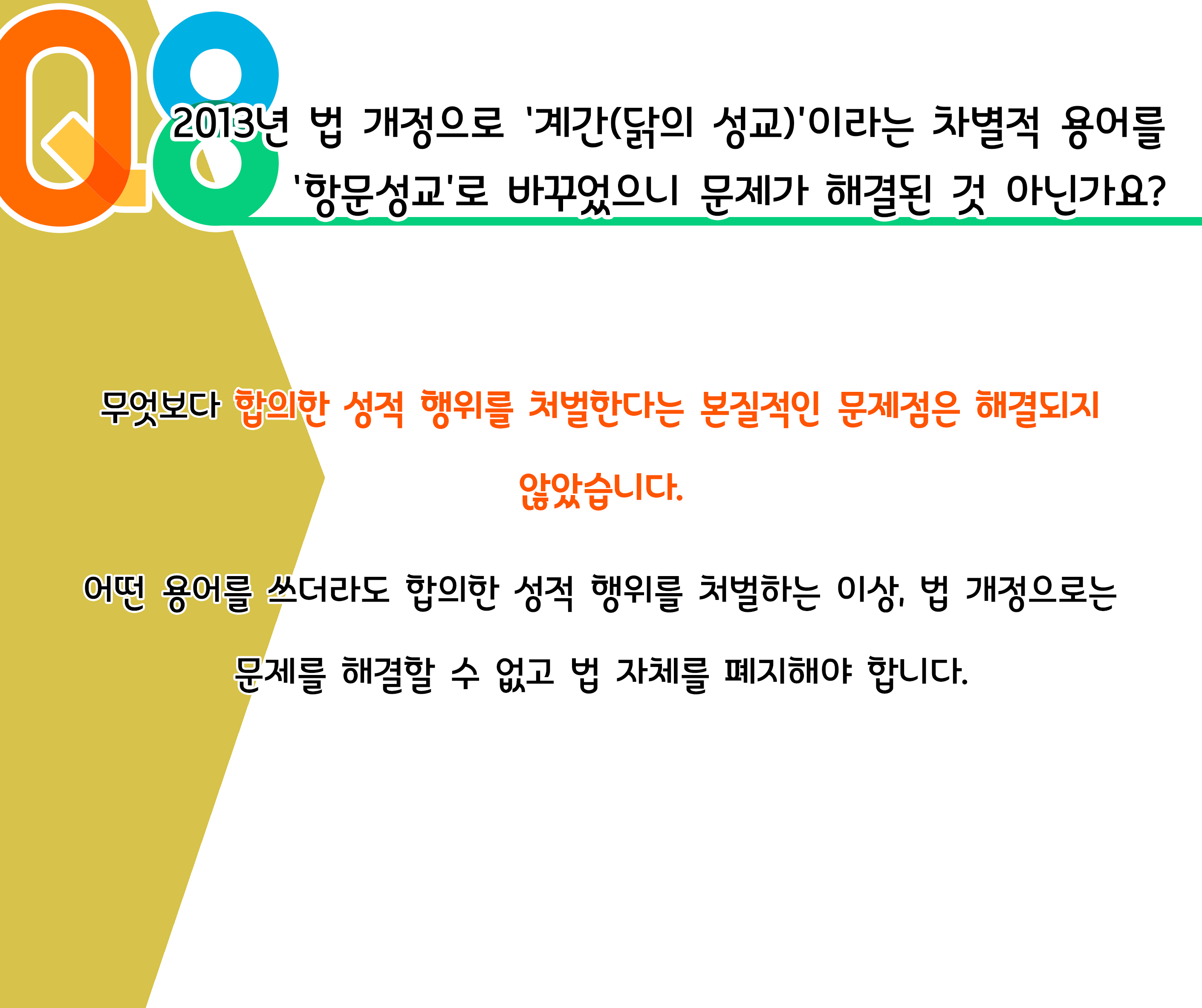 Q8. 2013년 법 개정으로 ‘계간(닭의 성교)’이라는 차별적 용어를 ‘항문성교’로 바꾸었으니 문제가 해결된 것 아닌가요?