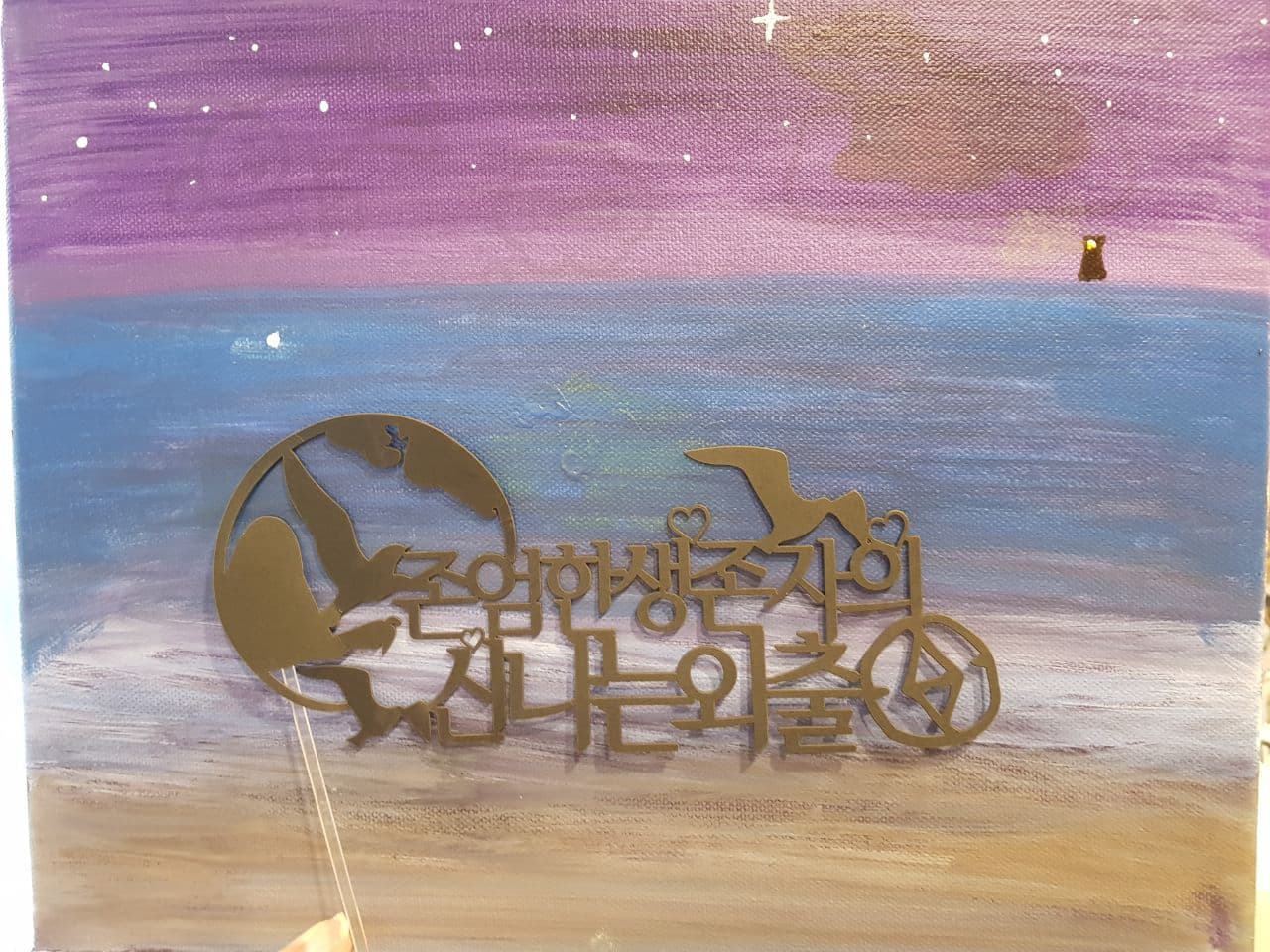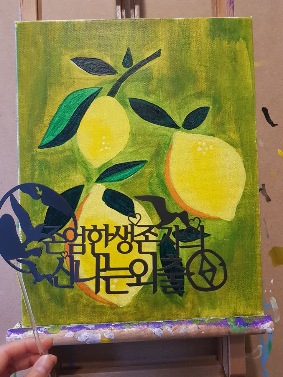 • 미대생처럼 앞치마에 토시 착용 후 나만의 밑그림 그리고 아크릴물감으로 집중하며 색칠해간 시간들~