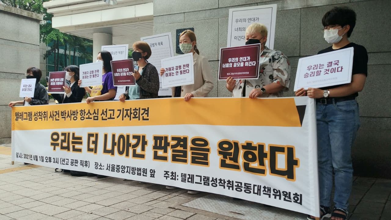 우선 범죄단체조직죄가 인정된 오늘의 판결을 환영합니다. 성범죄 사건에 범죄단체조직죄를 적용한 건 텔레그램 성착취 박사방 사례가 처음입니다. 결과적으로 형량이 감형되어 다소 아쉬움을 남겼지만 1심에 이어 범죄단체조직죄 적용을 유지한 이번 선고는 소지, 시청, 판매, 유포, 제작 각각의 단계가 개별적인 범죄가 아니라 서로 증폭시키며 범죄가 계속적, 반복적으로 구성된다는 디지털 성범죄의 특징을 재판부가 이해하고 이들 모두 범죄단체 조직원으로 엄중히 처벌하겠다는 의지를 보이는 것이라는 점에서 고무적입니다. 가슴을 졸이며 재판 결과를 기다리고 있을 피해자분들에게 오늘의 판결이 위안이 되길 바랍니다.