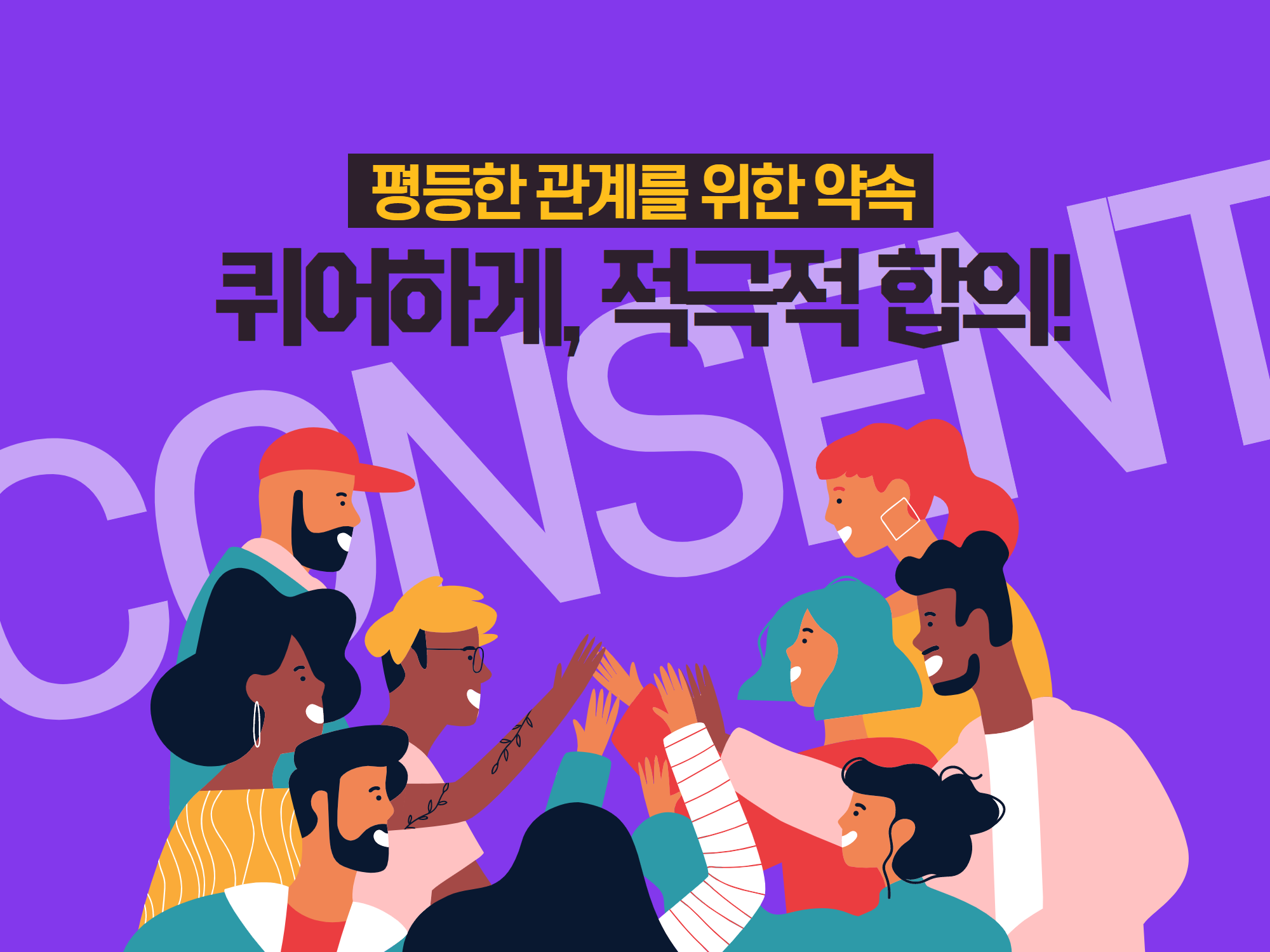 미투 이후 벌써 3년, 올해는 성적 동의를 넘어서는 <적극적 합의> 개념을 널리 알리는 프로젝트를 진행하기로 했습니다. 스킨십을 시작하기 전, 단순히 '좋아!', '싫어!'를 확인하는 것에서 한 단계 더 나아가, 상대방과 관계맺는 과정에서 일상과 섹스 모두 상호 합의가 필요하다는 점에서 이 프로젝트를 시작하게 되었어요. (인식개선 캠페인과 함께 법 역시도 바꾸기 위해, 강간죄개정연대 활동도 병행하고 있답니다.)