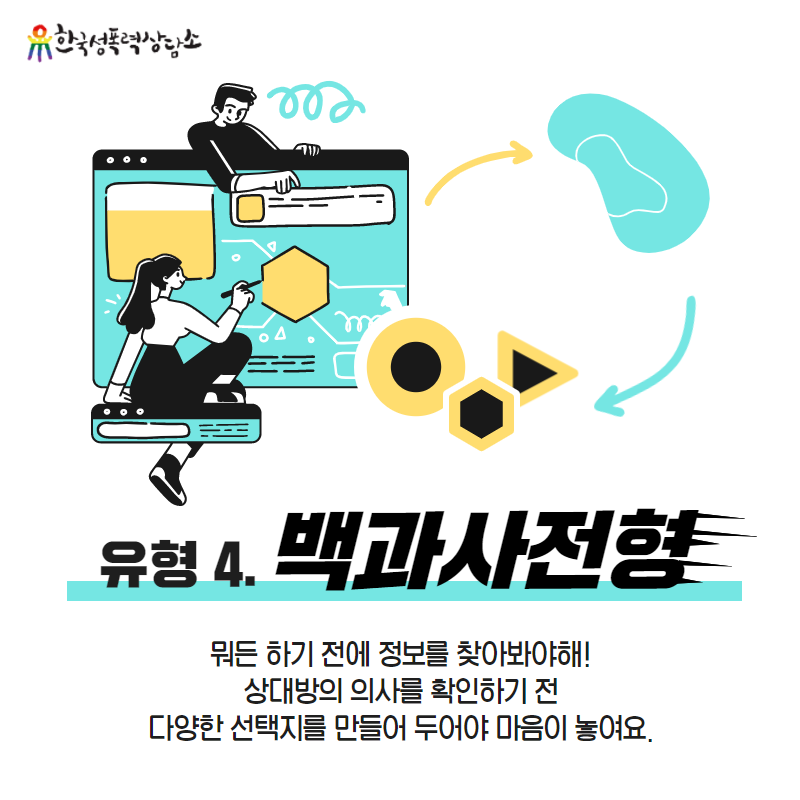 마지막 프로그램은 <나의 적극적합의 유형찾기> 였는데요, 평소에 내가 하던 적극적 합의의 과정 성향에 따라 네 가지 유형으로 나누었답니다. 아직도 링크는 열려있으니, 나의 유형이 궁금하신 분들은 한번 해보시고 나의 유형이 무엇인지 SNS에 알려주세요! 질문이 궁금하신 분들을 위해 질문도 슬쩍 공개할게요.