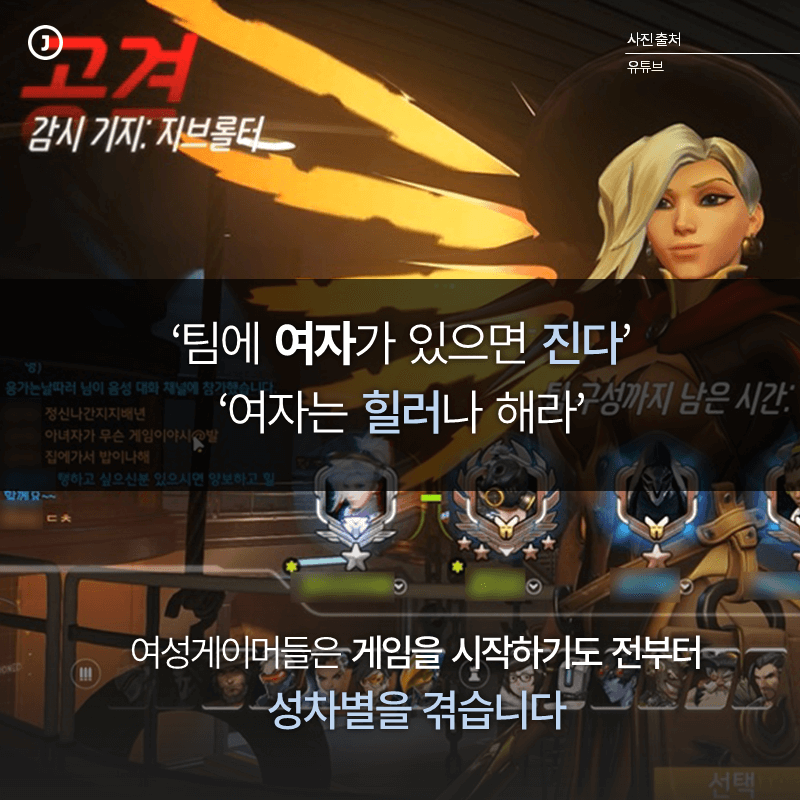 최근 온라인 게임에 빠진 한 참여자는 여성 게이머에게 요구되는 여성성에 대한 고민을 털어놓았습니다. 게임 특성상 다른 게이머들과 함께하지 않으면 게임을 즐길 수 없는데, 남성 게이머 비율이 훨씬 높아 여성 게이머는 쉽게 타자화된다고 합니다. 여성이라는 이유로 공격에 앞장서는 딜러보다는 힐러, 탱커처럼 (중요하고 필요하지만) 보조적인 역할을 하는 캐릭터를 추천받거나, 은연중에 '애교부릴 것, 리액션을 잘해줄 것' 등을 기대받는다고 합니다.
