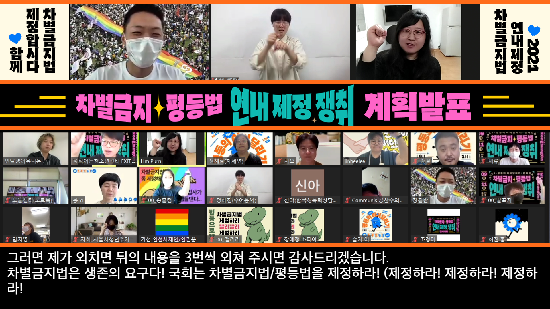 이렇게까지 열심히 하는데도! 법이 없어 화나고 지치지만 물러서지 않고 끝까지 싸워가 보아요! 2021년 차별금지/평등법 제정의 해가 될 수 있도록 말이에요.