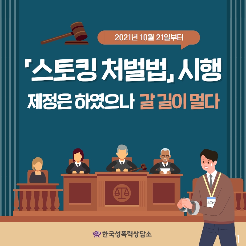 마침 스토킹처벌법이 시행되는 첫 날이어서 그 소식을 알리며 모임을 시작했습니다. 그동안 스토킹 처벌 조항 자체가 없었다는 점을 생각하면 제정을 환영해야 하겠지만, 스토킹행위를 바로 처벌하지 않고 지속적·반복적일 때만 범죄로 처벌하는 점, 반의사불벌죄로 규정한 점 등 아쉬운 점도 많아서 심경이 복잡했습니다. 한국성폭력상담소에서는 바로 전날 '2021년 10월 21일부터 스토킹처벌법 시행, 제정은 하였으나 갈 길이 멀다'라는 논평을 발표하기도 했었죠.