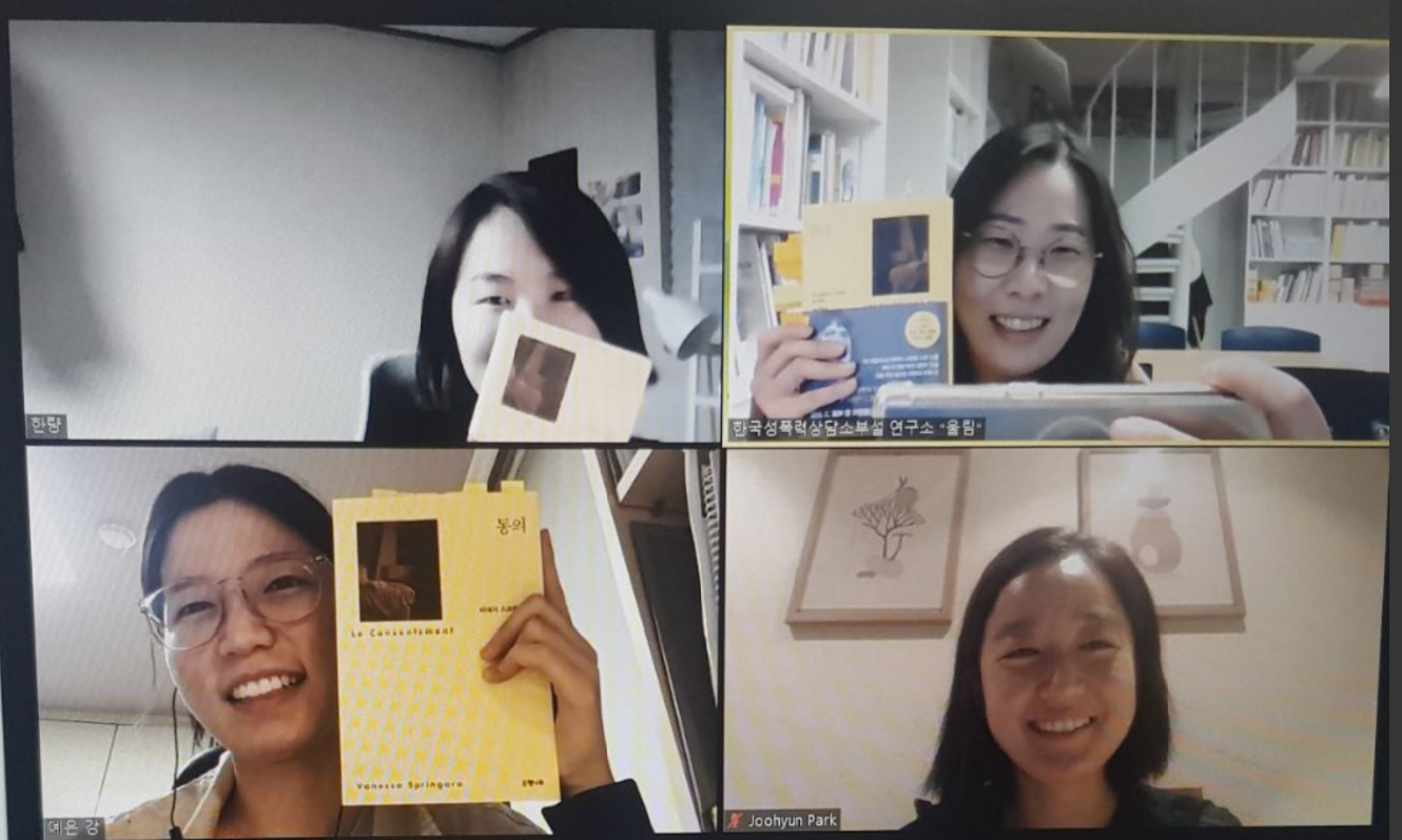 10월 모임에는 바네사 스프링고라의 <동의>라는 장편 소설을 읽고 이야기 나누는 시간을 가졌습니다.