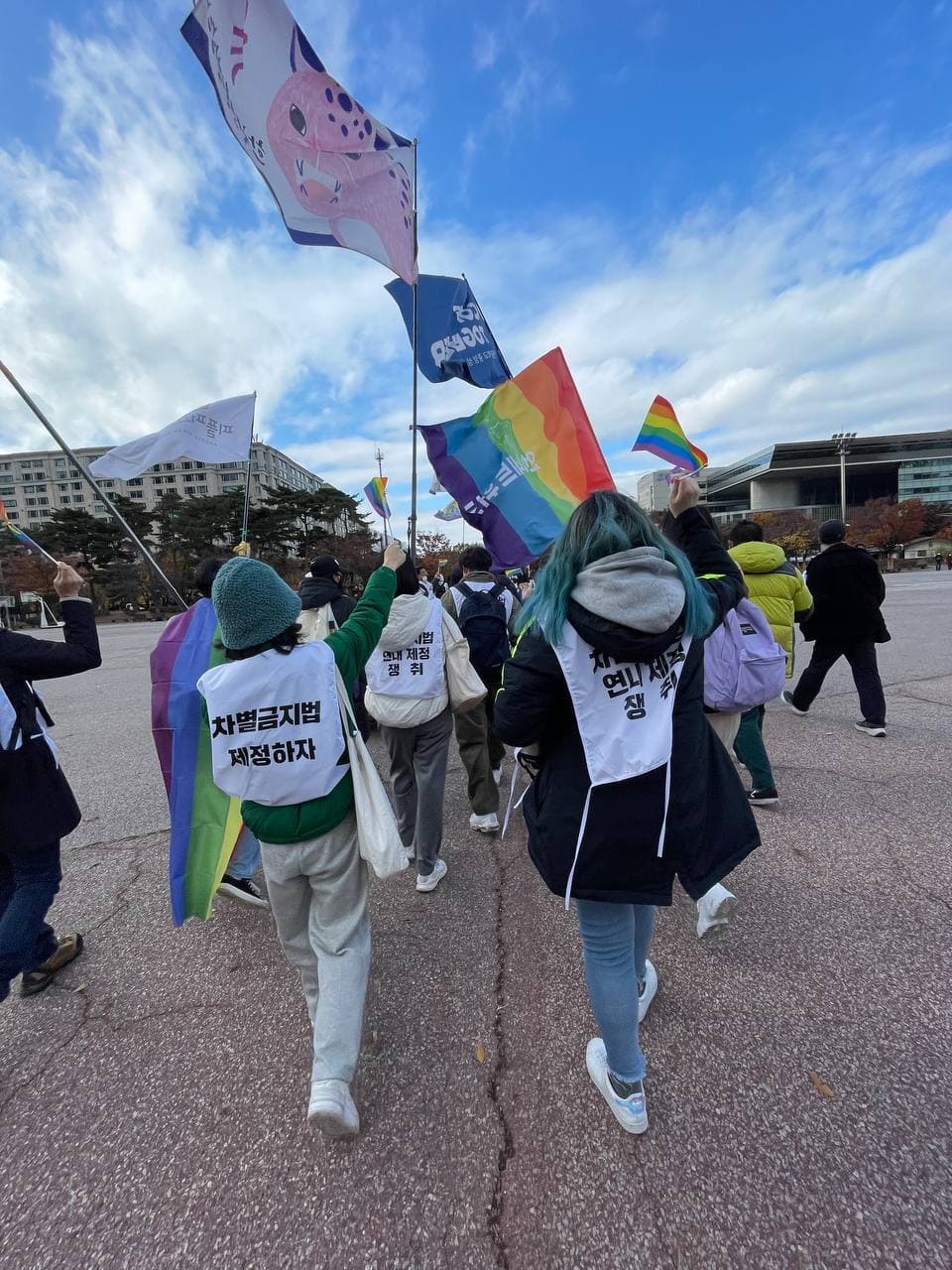 금천구청역에서부터 여의도에 이르는 행진길을 쉽지 않았습니다. 오랜만의 행진이라 기운이 넘치던 초반 1시간을 지나자 슬슬 지쳐갔습니다. 차별금지법 제정이 미뤄진 14년, 차별금지법제정연대에서 활동하며 지켜본 최근의 몇 년을 떠올렸습니다. ‘차별금지법 제정은 왜 이렇게 지난한 과정이어야 할까?’ 다른 행진 참여자들의 발언이 길잡이가 되어주었습니다.