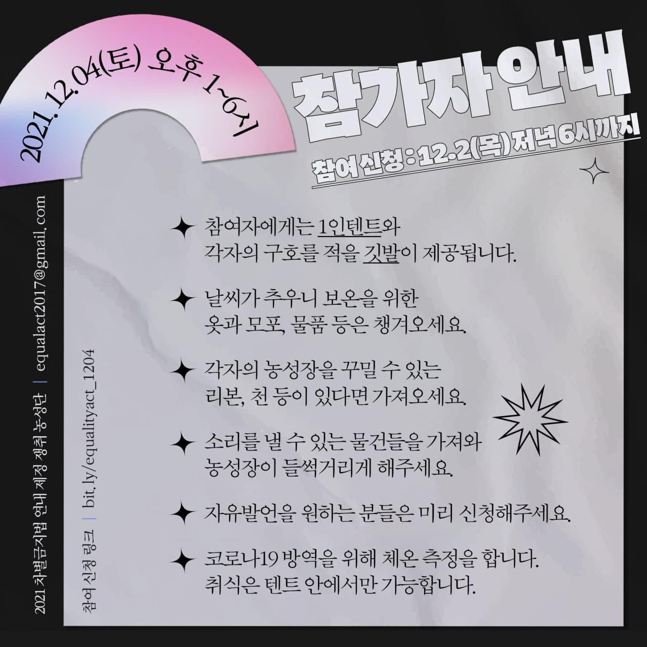- 문의 : 차별금지법제정연대 (이메일 equalact2017@gmail.com, 카카오채널 @equalityact)