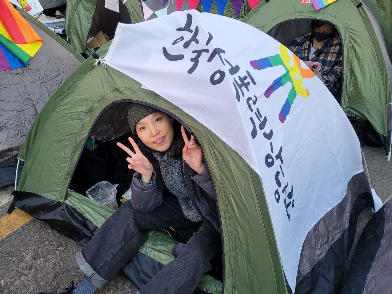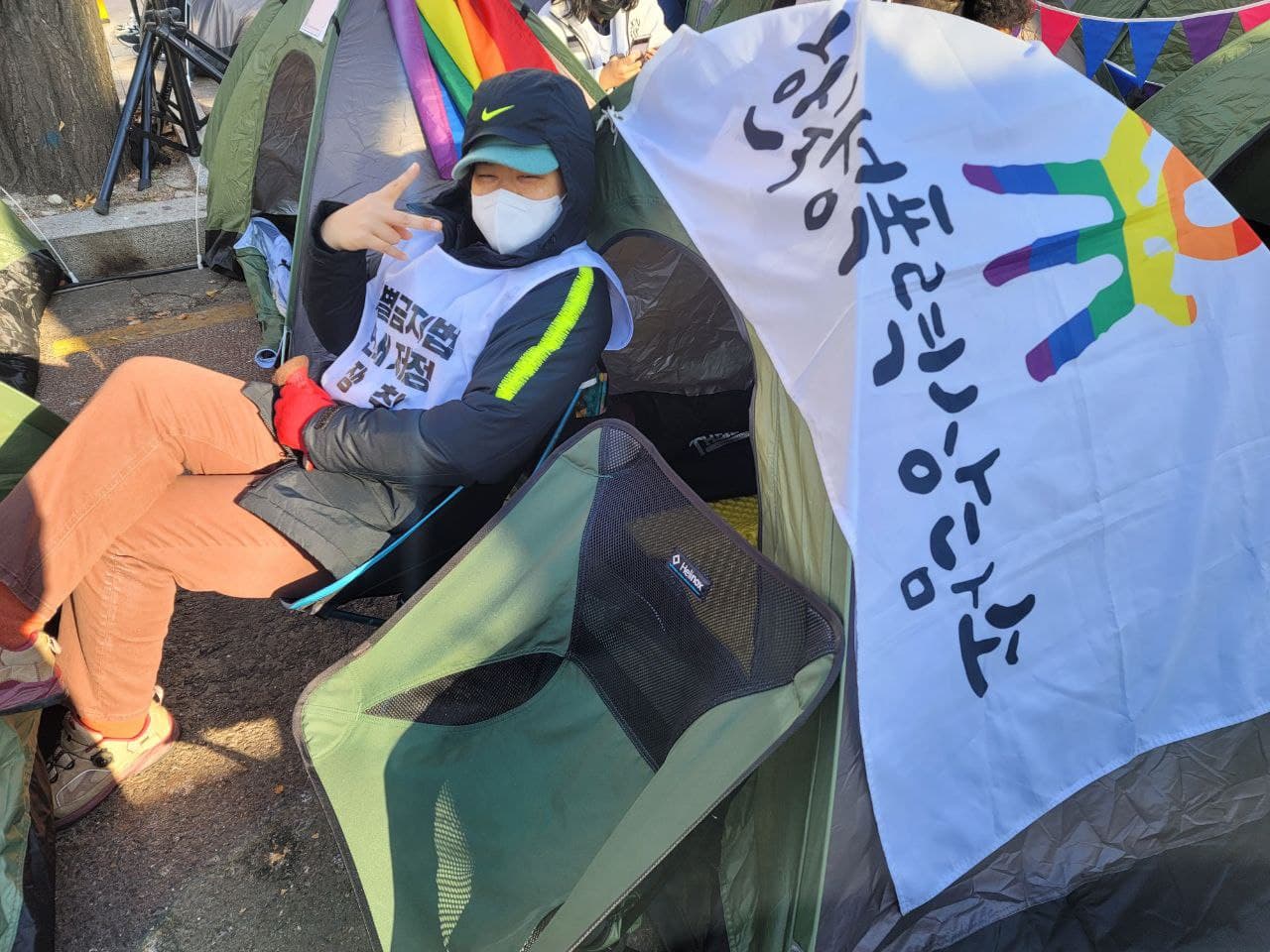 추운 듯 따뜻한 밤을 보내고, 아침 일찍 발전기에 기름도 채우고, 오전에 방문한 상담소 활동가들이 사다준 커피를 마시고, 아침 농성을 시작하며 하루를 열었습니다. 조용한 아침 농성장 바닥에 쥐가 잠시 나타났다 인기척이 들리자 후다닥 숨는 것도 보았습니다.ㅎㅎ 그래도 이렇게 차별금지법 제정이 미뤄지는 추운 겨울 농성장은 꽤 아늑한 거점, 우리의 요구들이 모이는 장소가 되어주고 있는 것 같습니다. 어느때보다 차별금지법 제정을 함께 말하는 사람들이 많았던 올해가 차별금지법 없이 끝나갑니다. 그러나 차별금지법 제정이 한국 사회에 없는 것은 국회와 정부의 실패이지 우리의 실패라고 생각하지 않습니다.