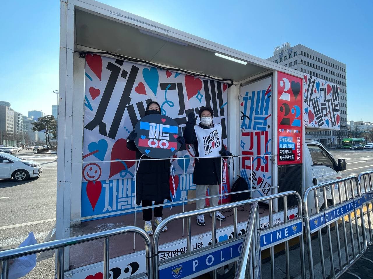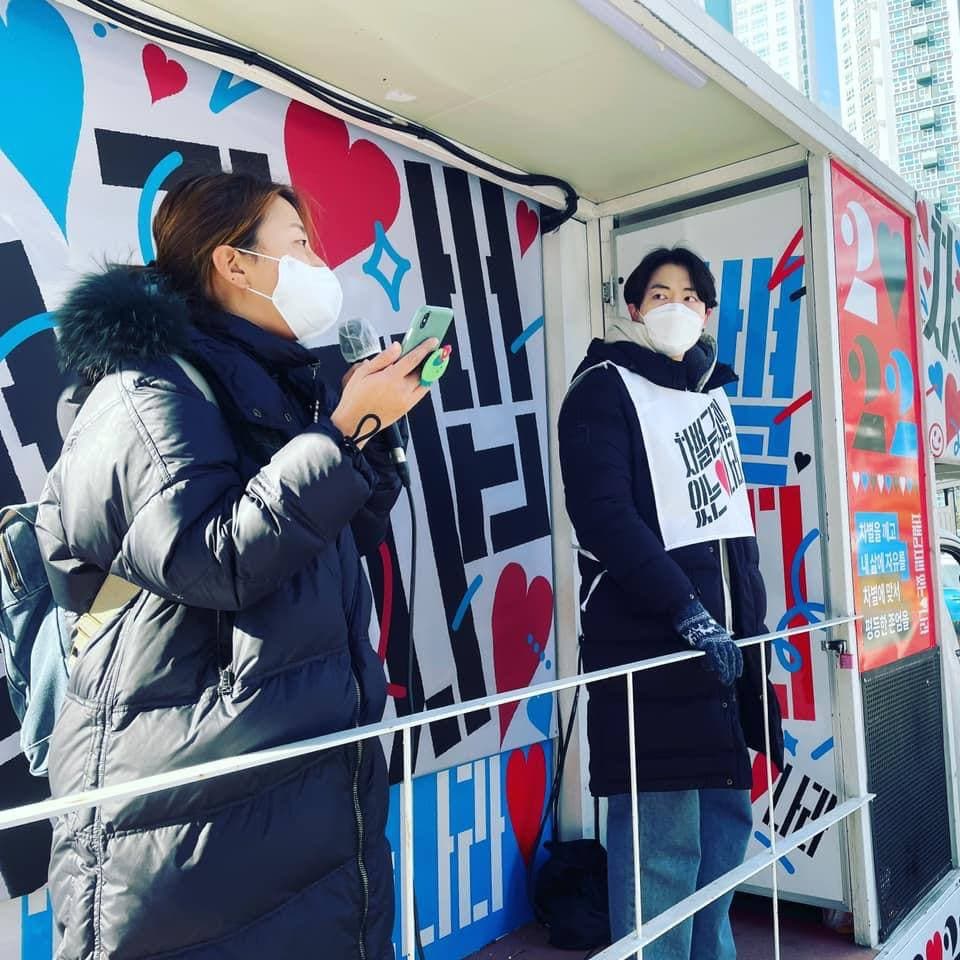 2022년 1월 11일 새해를 힘차게 열며 차별금지법 있는 나라 만들기 유세단이 출범하였습니다. 국회 앞 평등을 바라는 시민들의 든든한 거점이 되어주던 농성단이 유세단으로 전환된 것입니다. 어떤 대통령 후보도 차별금지법을 이야기하지 않기에, '대선보다 차별금지법이 먼저다' 라는 기조로 우리가 나선 것이지요. 상담소에서는 신아 활동가가 기자회견에 참석하였습니다.