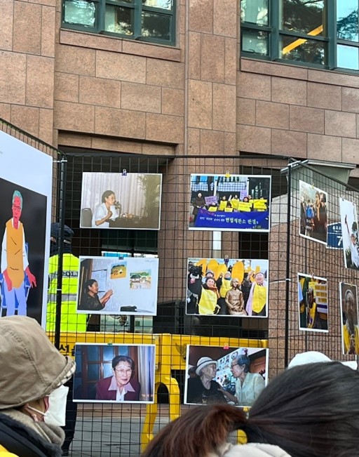 1월 마지막주에는 외근도 다녀왔습니다. 먼저 제 1528차 정기 수요시위에 참석했는데요, 제 1528차 일본군성노예제 문제해결을 위한 정기 수요시위는 정의기억연대의 주최로 고 김복동 활동가님의 3주기를 기념하며 열렸습니다. “내가 기억하는 김복동 할머니’ 라는 주제로 많은 분들이 연대발언을 해 주셨고 다 함께 추모의 시간도 가졌습니다. 연대발언들을 들으며 눈물을 흘리지 않으려고 필사적으로 참았지만 그럼에도 불구하고 너무 많이 울어서 눈가가 벌겠습니다. 매우 추운 날씨였지만 모인 사람들의 열기로 마음만은 따뜻한 날이었습니다.