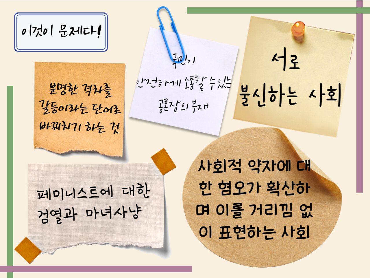 저는 권명아 선생님의 발제를 들으면서 “차별선동의 역사를 참조해보면 차별선동은 표적 집단이 된 사람들의 삶을 돌이킬 수 없을 정도로 파괴한다”는 말이 기억에 남았어요. 2부에 이어진 필리버스터에서도, 1부 발제를 들으며 제가 느낀 전반적인 인상도 ‘위기감’이었는데요. 이대남 담론이 담고 있는 페미니즘에 대한 혐오정서가 대선 이후에도 어떻게 이어질지 불투명한 상황에서, <시국토론회>같이 함께 머리를 맞대는 자리가 더욱 소중하게 느껴졌습니다.