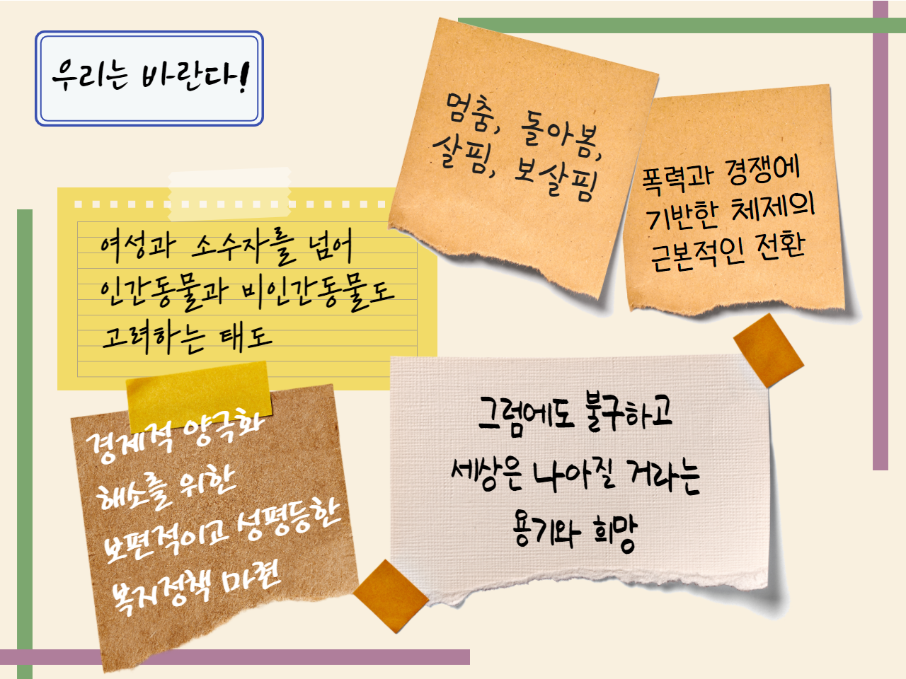 “우리는 바란다! 그럼에도 불구하고 세상은 나아질 거라는 용기와 희망”