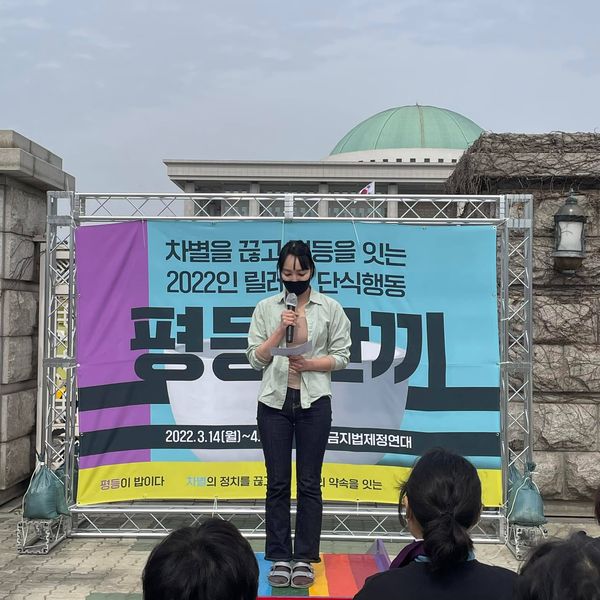 이에 저는 더욱 두렵습니다. 저는 20대 여성이지만 동시에 성범죄 피해 생존자입니다. 가해자와 싸우는 동안 수많은 혐오의 질타를 받았습니다. 여성가족부의 지원 아래 저는 가까스로 살아남았습니다. 성평등은 남성의 인권을 끌어내리는 것이 아닙니다. 누구의 존엄도 짓밟지 않습니다. 그러나 반페미니즘은 정치적 전략으로 사용되었고, 구조적 성차별은 없는 것이 되었습니다. 성별 갈라치기를 통해 많은 지지를 얻은 당선인이 있습니다. 저는 앞으로의 5년이 너무나도 절망스럽습니다. 다음 정부까지 시간이 얼마 남지 않았습니다. 마지막으로 현 정부에 바라는 것이 있다면, 바로 차별 금지법 제정일 것입니다. 우리가 우리로서 존재할 수 있도록 해주십시오. 그 누구도 사회적 합의 이후에나, 나중에 가서야 인정받을 존재가 아닙니다.