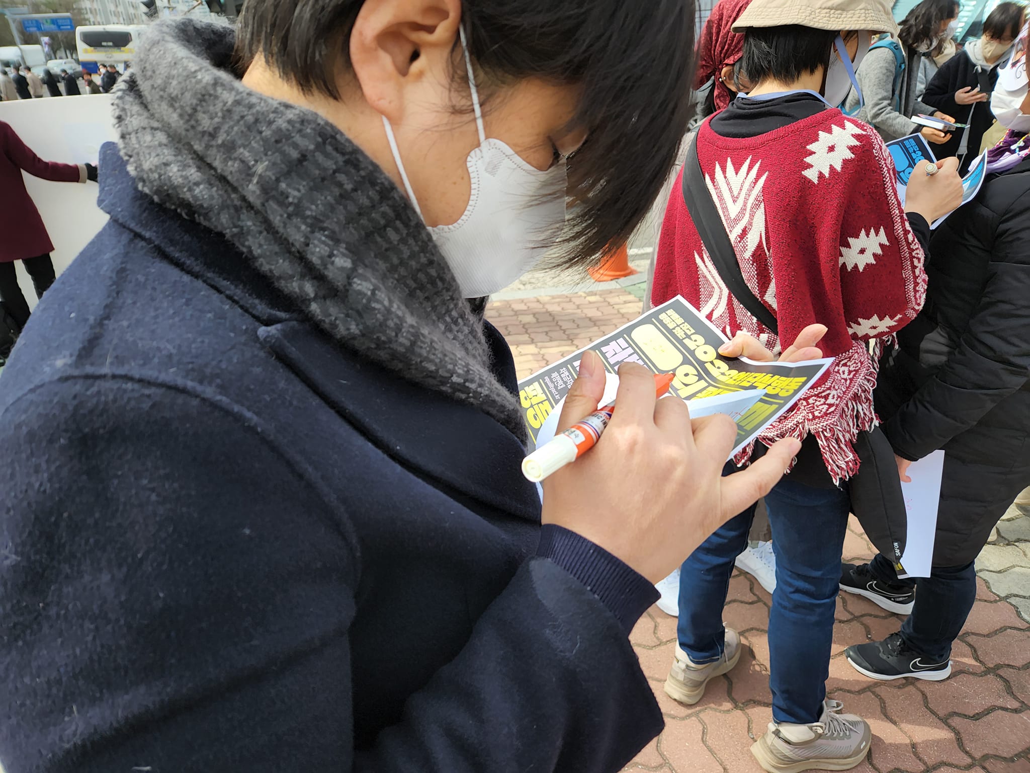 이에 저는 더욱 두렵습니다. 저는 20대 여성이지만 동시에 성범죄 피해 생존자입니다. 가해자와 싸우는 동안 수많은 혐오의 질타를 받았습니다. 여성가족부의 지원 아래 저는 가까스로 살아남았습니다. 성평등은 남성의 인권을 끌어내리는 것이 아닙니다. 누구의 존엄도 짓밟지 않습니다. 그러나 반페미니즘은 정치적 전략으로 사용되었고, 구조적 성차별은 없는 것이 되었습니다. 성별 갈라치기를 통해 많은 지지를 얻은 당선인이 있습니다. 저는 앞으로의 5년이 너무나도 절망스럽습니다. 다음 정부까지 시간이 얼마 남지 않았습니다. 마지막으로 현 정부에 바라는 것이 있다면, 바로 차별 금지법 제정일 것입니다. 우리가 우리로서 존재할 수 있도록 해주십시오. 그 누구도 사회적 합의 이후에나, 나중에 가서야 인정받을 존재가 아닙니다.