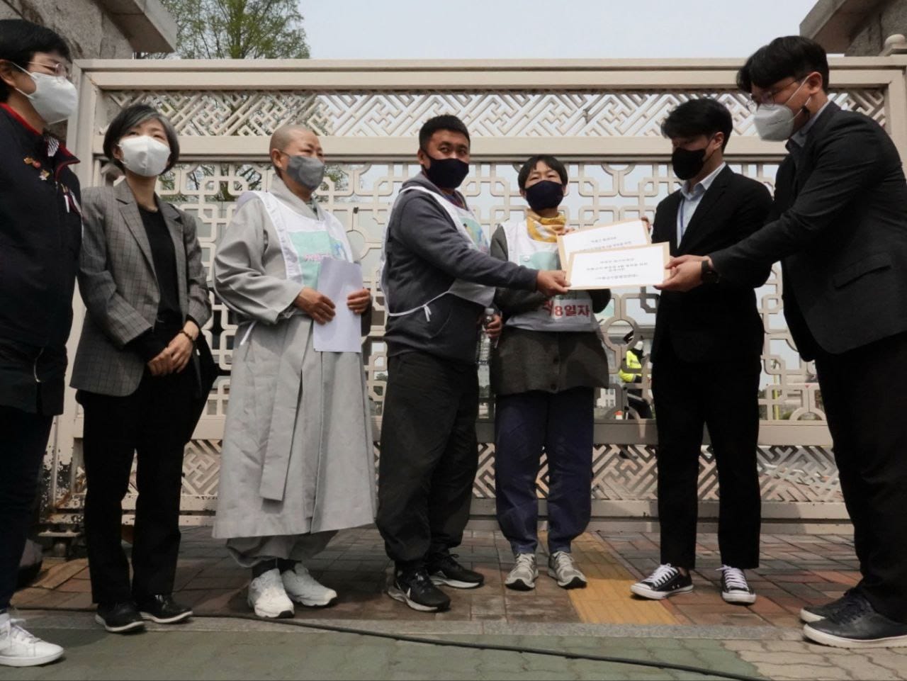 * 결국 국회 방호과의 입장불가에 가로막혀, 더불어민주당 원내대표실, 법제사법위원장실 보좌관들이 국회 밖으로 나와 공개서한을 수령하였습니다.